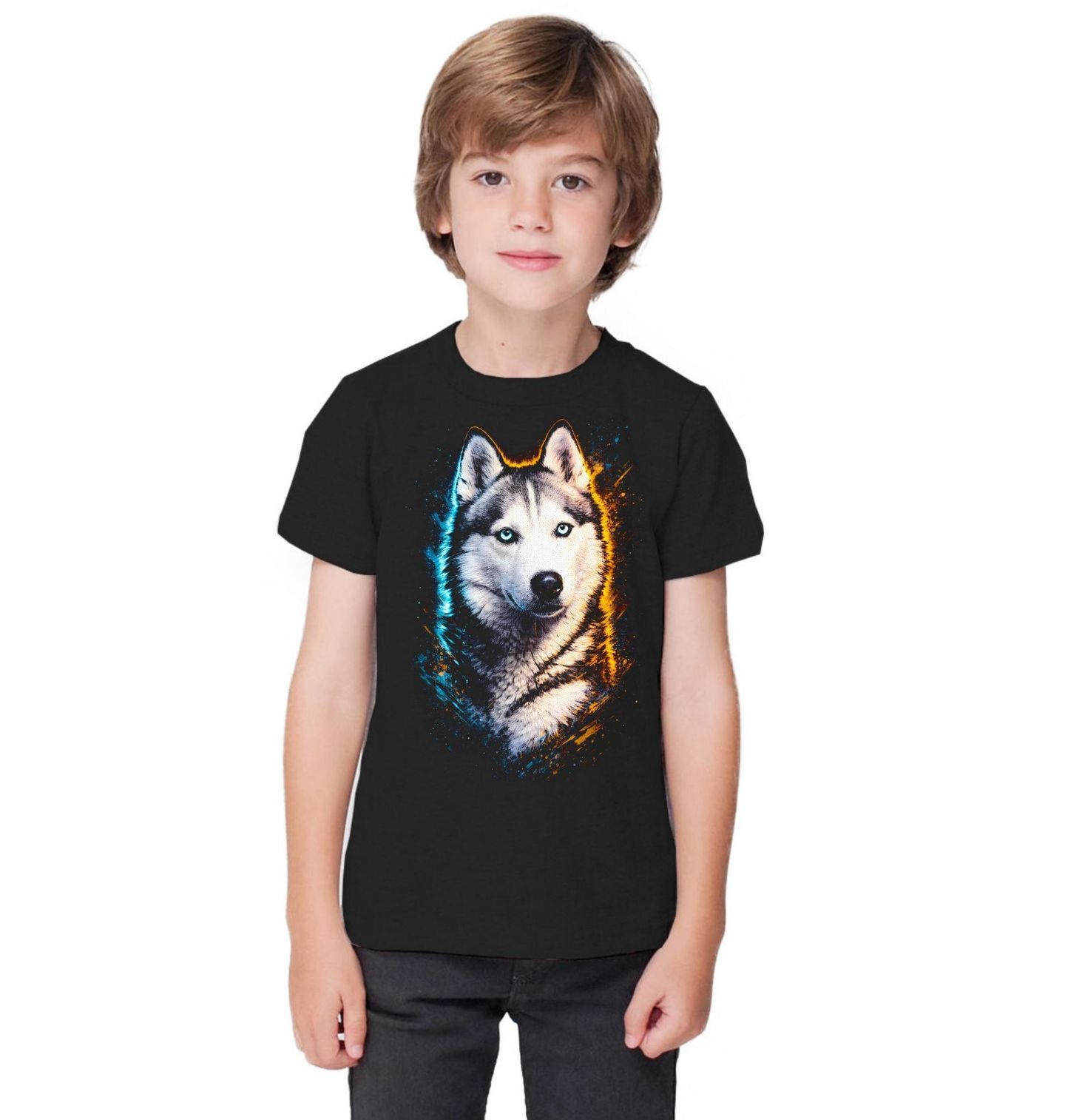 Dětské tričko Ledový Pohled Sibiřského huskyho. Tento jedinečný motiv zobrazuje plemeno Sibiřský husky, které je známé svým nezaměnitelným vzhledem a pronikavýma modrýma očima. Sibiřský husky je aktivní a vytrvalý pes, který miluje pohyb, dobrodružství a svobodu. Každý pejskař ocení jeho energii, inteligenci a nezávislou povahu.