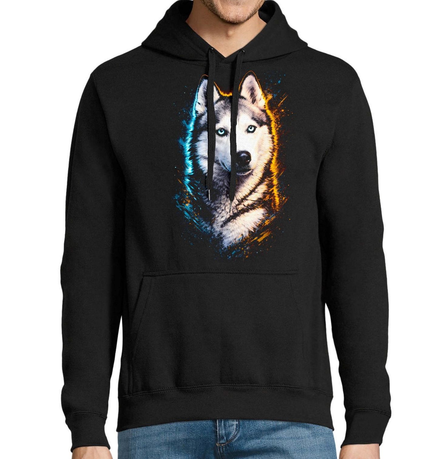 Pánská mikina Ledový Pohled Sibiřského huskyho. Tento jedinečný motiv zobrazuje plemeno Sibiřský husky, které je známé svým nezaměnitelným vzhledem a pronikavýma modrýma očima. Sibiřský husky je aktivní a vytrvalý pes, který miluje pohyb, dobrodružství a svobodu. Každý pejskař ocení jeho energii, inteligenci a nezávislou povahu.