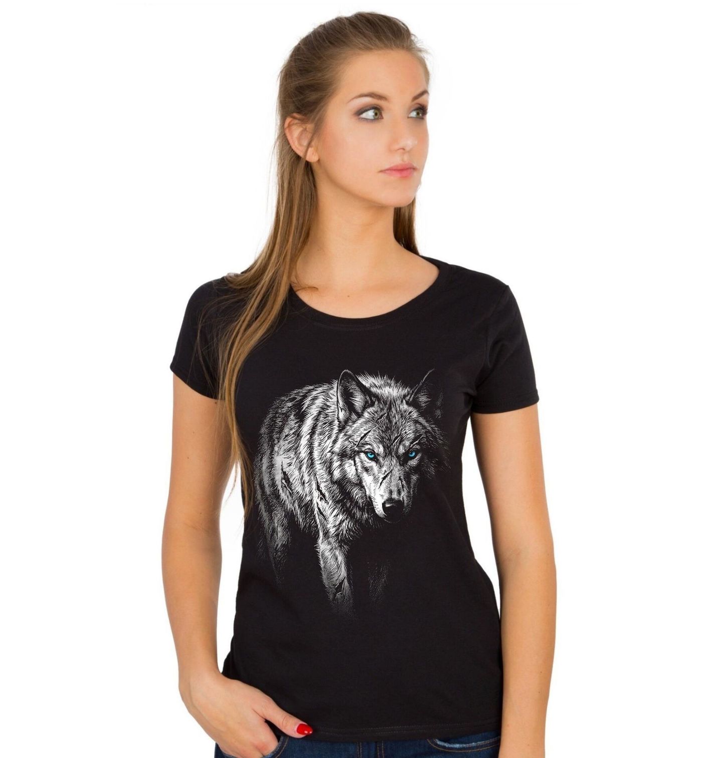 Dámské tričko Ledový Pohled Vlka. Silný a tajemný motiv, kde vlk vystupuje z temnoty s pronikavým, ledově modrým pohledem. Tento detailně zpracovaný design zachycuje vlk jako symbol síly, samostatnosti a nezkrotné divokosti. Motiv je ideální pro ty, kdo mají rádi divokou přírodu, sílu individuality a respekt k instinktům. Vlk v tomto provedení představuje odhodlání, vytrvalost a vnitřní sílu.