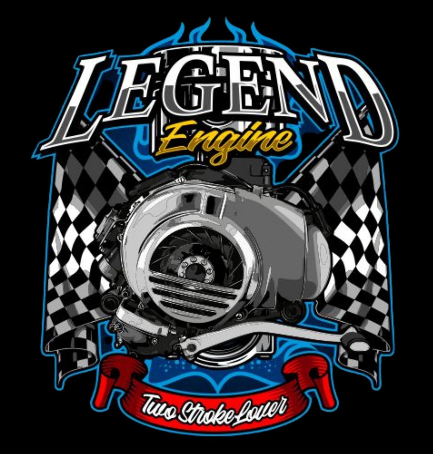 Pánské tričko Legendární Dvoutaktní Motor. „Legend Engine – Two Stroke Lover“ je poctou opravdovým fanouškům motorky a syrové síle dvoutaktního motoru. Dominantní ilustrace klasického dvoutaktu s šachovnicovými vlajkami evokuje závodní styl a vášeň pro rychlost i vůni směsi oleje a benzínu.