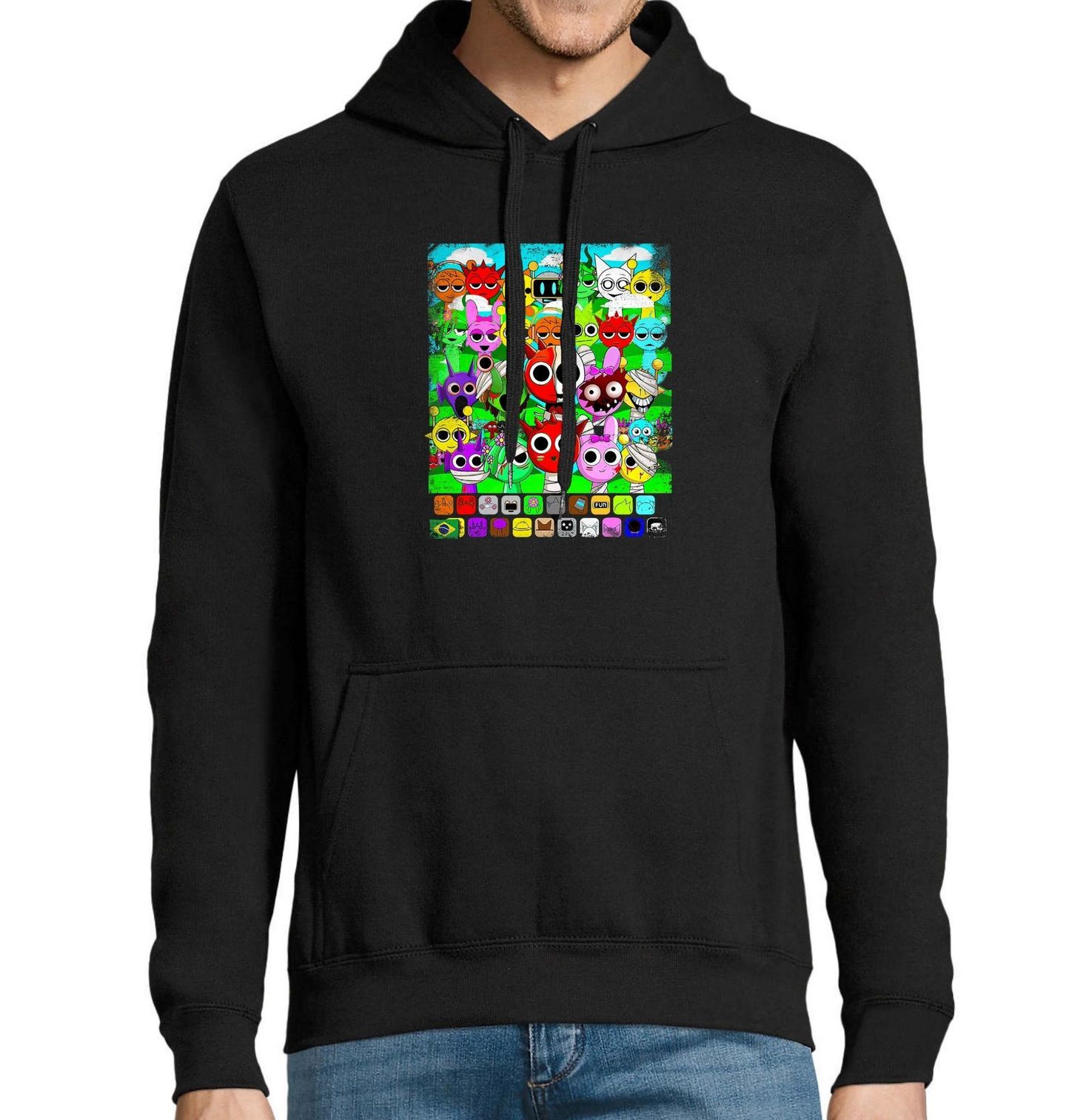 Pánská mikina Legendární Sprunki. Tohle tričko je ultimátní pocta fenoménu Incredibox Sprunki – fanouškovské verzi legendární hudební hry, která se stala internetovým hitem. Motiv zachycuje barevný zástup ikonických postaviček Sprunki, z nichž každá má svůj vlastní zvuk, osobnost a styl. Čisté meme umění – chaotické a vtipné.