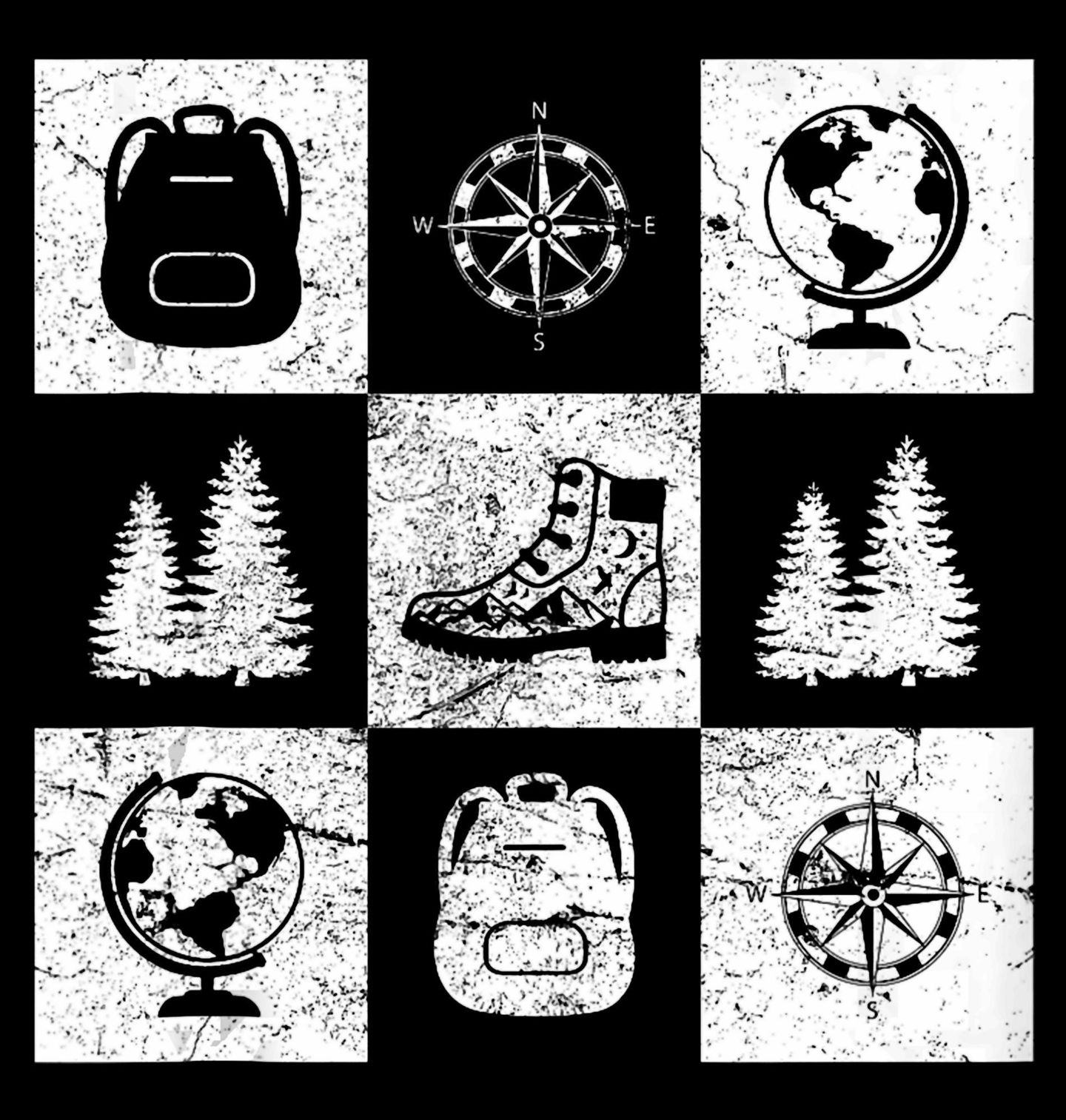 Pánské tričko Lesní Výbava Cestovatele. Objevuj svět s motivem Lesní výbava, který je ideální pro milovníky přírody, dobrodružství a cestování. Design kombinuje prvky jako les, kompas, glóbus, batoh a hikingová bota, čímž vyvolává touhu po campingu, túrách a objevování neznámých koutů světa.