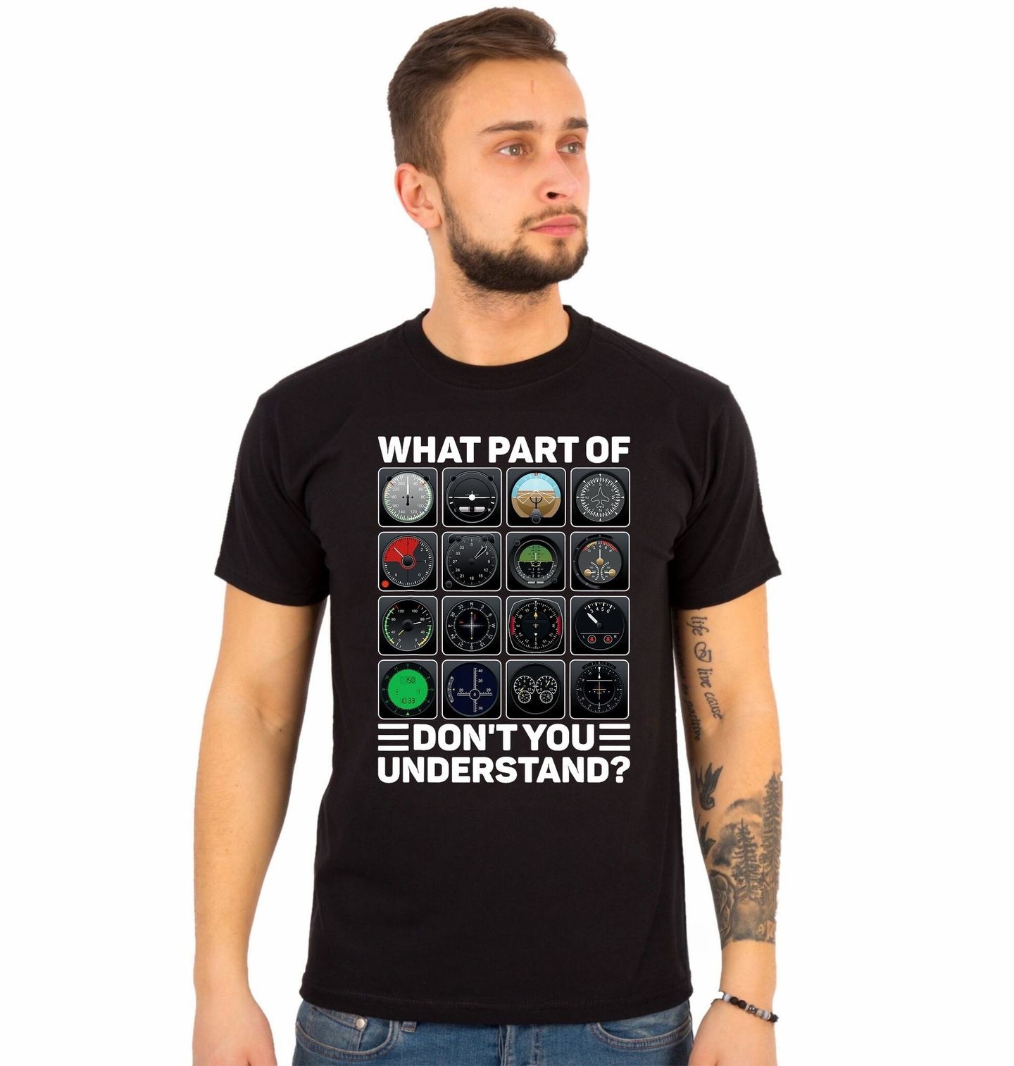 Pánské tričko Letecké Přístroje Které části nerozumíš? Technický motiv z prostředí letectví obsahuje text „WHAT PART OF … DON’T YOU UNDERSTAND?“, tedy „Které části nerozumíš?“. Detailní přístroje, které má každé letadlo osloví každého pilota nebo fanouška letectví.