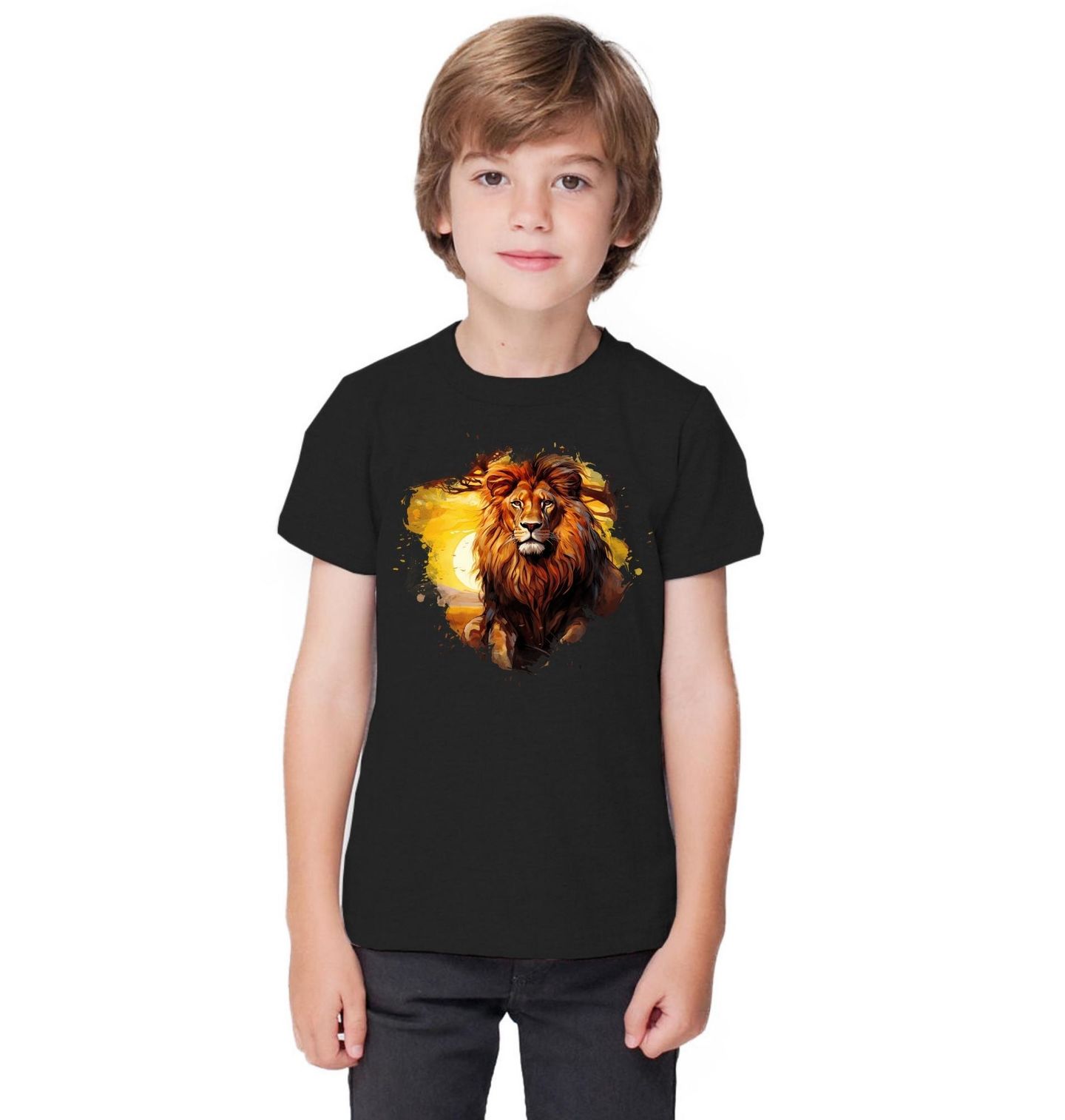 Dětské tričko Lev při Západu Slunce. Každý detail hřívy i pohledu podtrhuje jeho přirozenou autoritu a klidnou sílu. Šelma zde působí majestátně a sebevědomě – přesně tak, jak ji známe z divoké přírody. Lev žije především v Africe, kde obývá savany, otevřené pláně a řídké lesy.