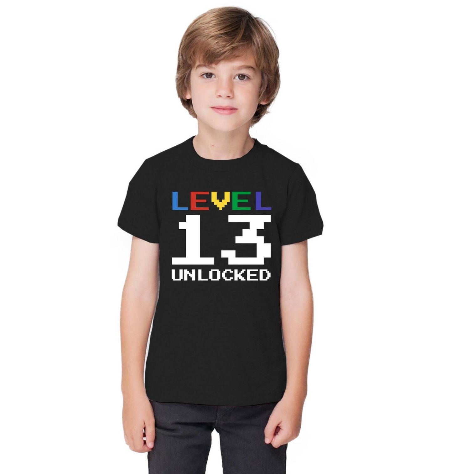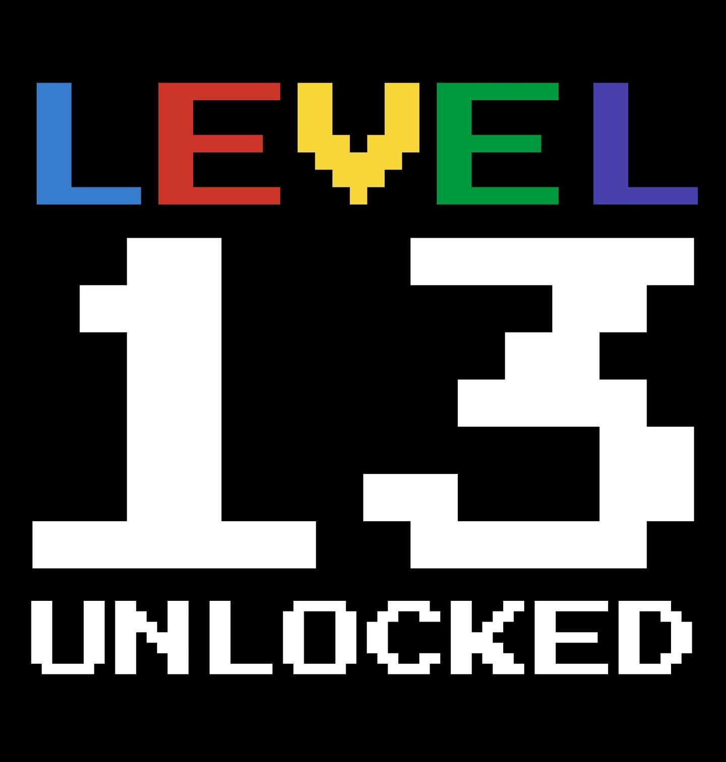 Dětské tričko Level 13 Unlocked. Originální motiv Level 13 Unlocked je skvělou volbou pro každého mladého hráče, který slaví své narozeniny v herním stylu. Text na motivu v překladu znamená „Úroveň 13 odemčena“, takže perfektně vystihuje oslavu třináctých narozenin pro každého, kdo miluje videohry, levely a pixelový svět.