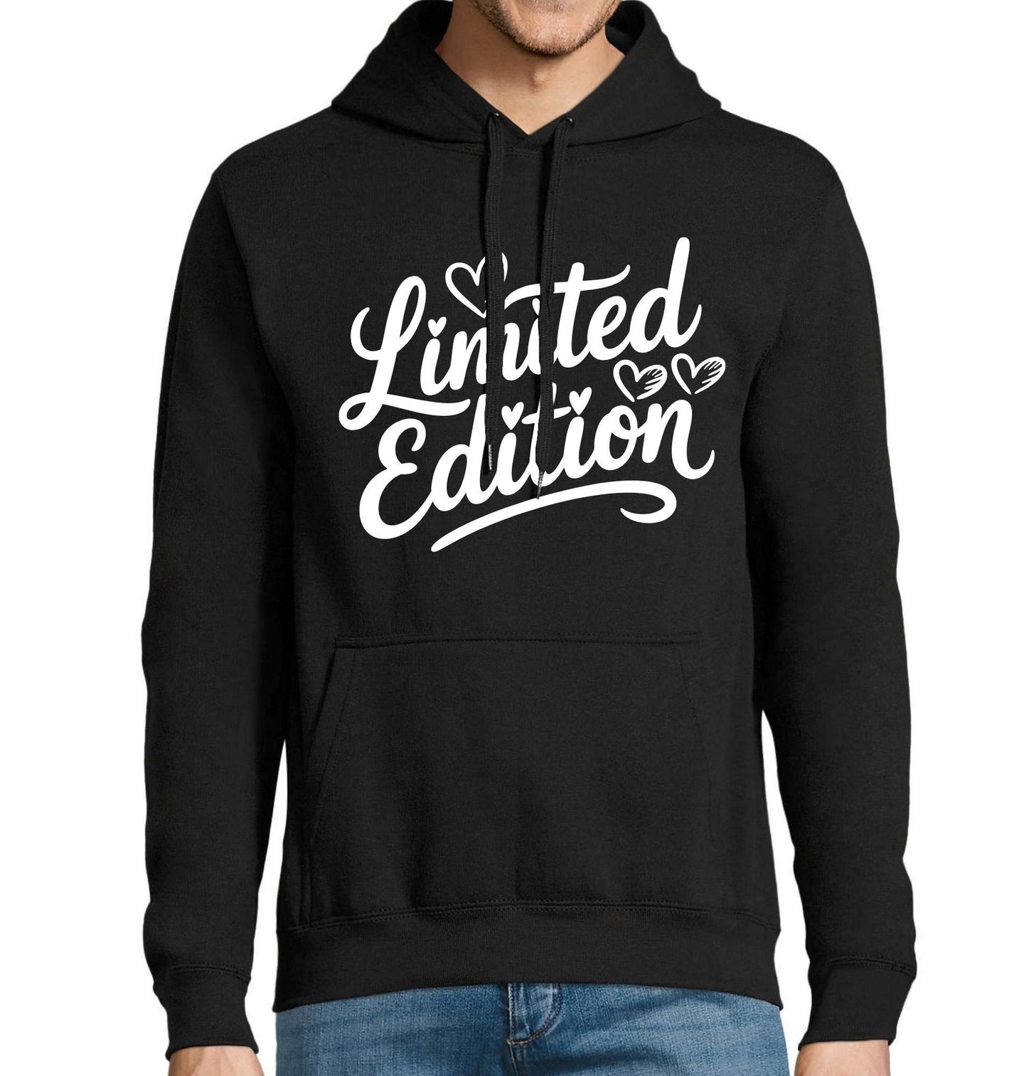 Pánská mikina Limitovaná Edice s Láskou. Stylový typografický motiv s ručně psaným nápisem Limited Edition doplněný o jemné ilustrace srdcí vyjadřuje jedinečnost, emoce a výjimečnost okamžiku. Tento design mluví jasně: nejde o masovou záležitost, ale o kousek, který má srdce a osobní význam.