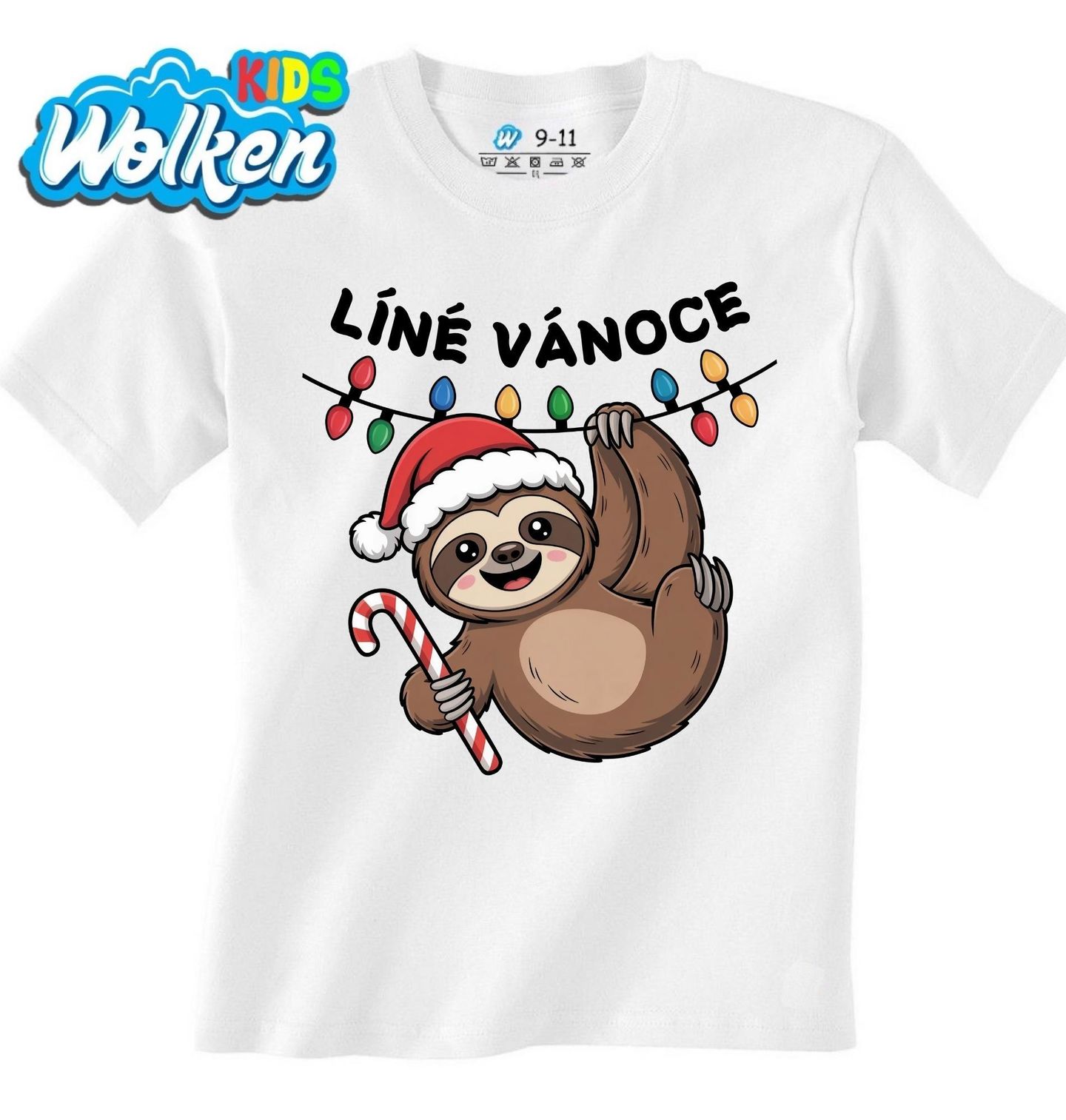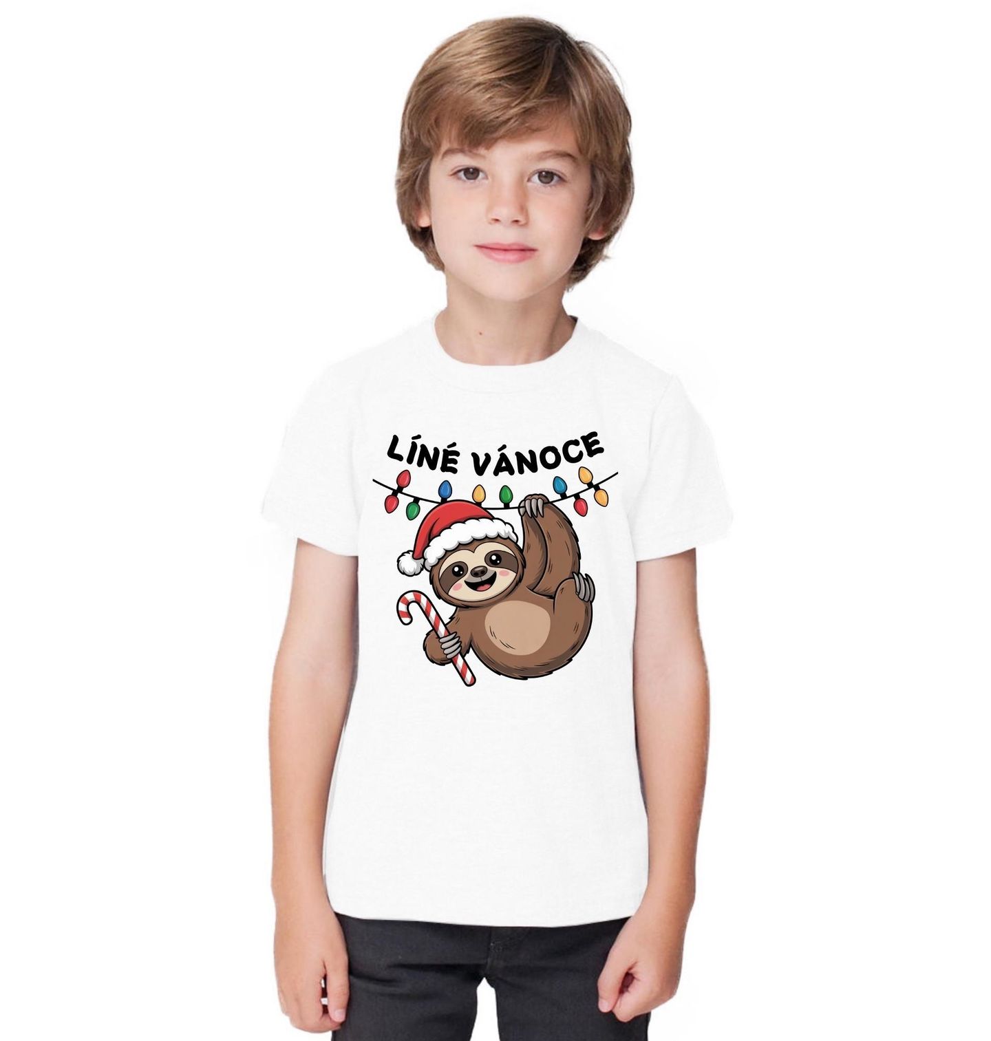 Dětské tričko Líné Vánoce Mládě Lenochoda. Tento veselý motiv s nápisem „Líné Vánoce“ je jako stvořený pro všechny, kteří chtějí prožít Vánoce v klidu, pohodě a s úsměvem. Roztomilý lenochod se Santovskou čepicí a lízátkem perfektně vystihuje sváteční náladu bez stresu a shonu.