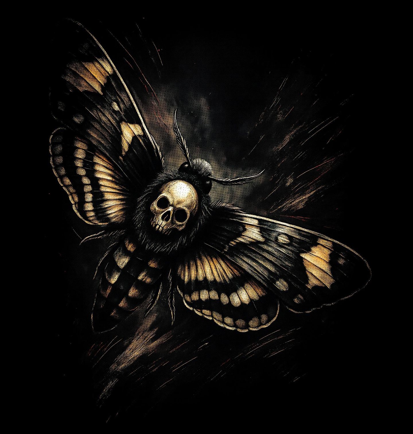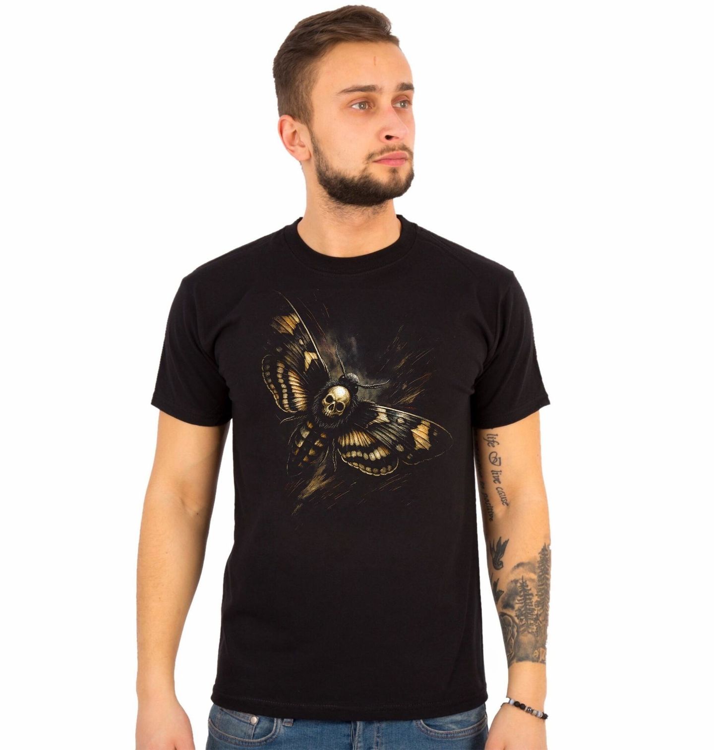 Pánské tričko Lišaj smrtihlav. Lišaj smrtihlav (Acherontia atropos) je velký a nápadný motýl z čeledi lišajovitých, jeden z největších motýlů České republiky a Evropy vůbec. Díky kresbě na hrudi, připomínající lebku, je bezesporu nejznámějším lišajem – zejména v minulosti pověrčiví lidé věřili, že smrtihlav je znamením neštěstí.