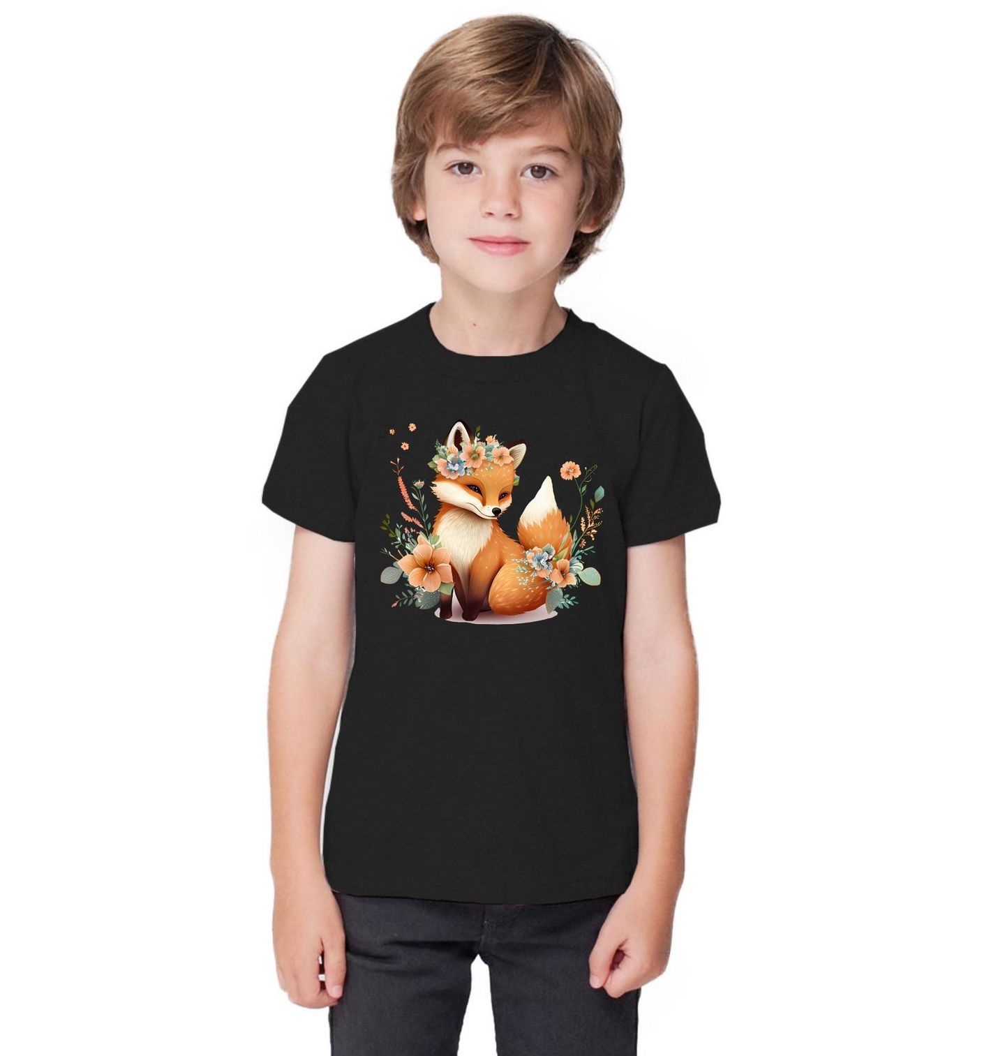 Dětské tričko Liška s Květinovou Korunou. Roztomilý a jemný motiv zobrazuje elegantní zvíře, kde v hlavní roli je liška s věnečkem z pastelových květů. Okolo ní rozkvétají barevné květiny, které dodávají ilustraci pohádkový a romantický nádech. Tento design spojuje přírodu, něhu a hravost – skvěle se hodí pro všechny milovníky lesa, zvířat a kouzelných ilustrací.