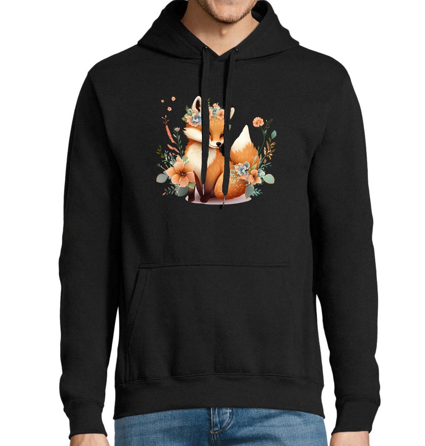 Pánská mikina Liška s Květinovou Korunou. Roztomilý a jemný motiv zobrazuje elegantní zvíře, kde v hlavní roli je liška s věnečkem z pastelových květů. Okolo ní rozkvétají barevné květiny, které dodávají ilustraci pohádkový a romantický nádech. Tento design spojuje přírodu, něhu a hravost – skvěle se hodí pro všechny milovníky lesa, zvířat a kouzelných ilustrací.