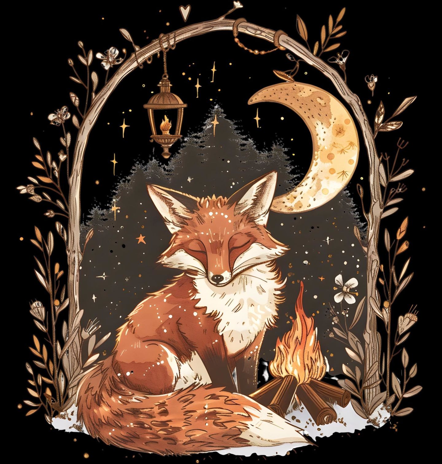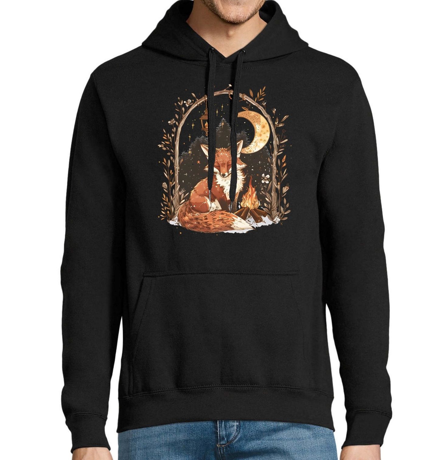 Pánská mikina Liška u Nočního Táboráku. Kouzelný motiv, kde liška klidně odpočívá u jemně plápolajícího ohně pod zářícím měsícem. Celá scéna působí snově a harmonicky, doplněná o přírodní detaily a teplé světlo, které vytváří útulnou atmosféru nočního lesa. Liška a táborák zde symbolizují klid, pohodu i spojení s přírodou.