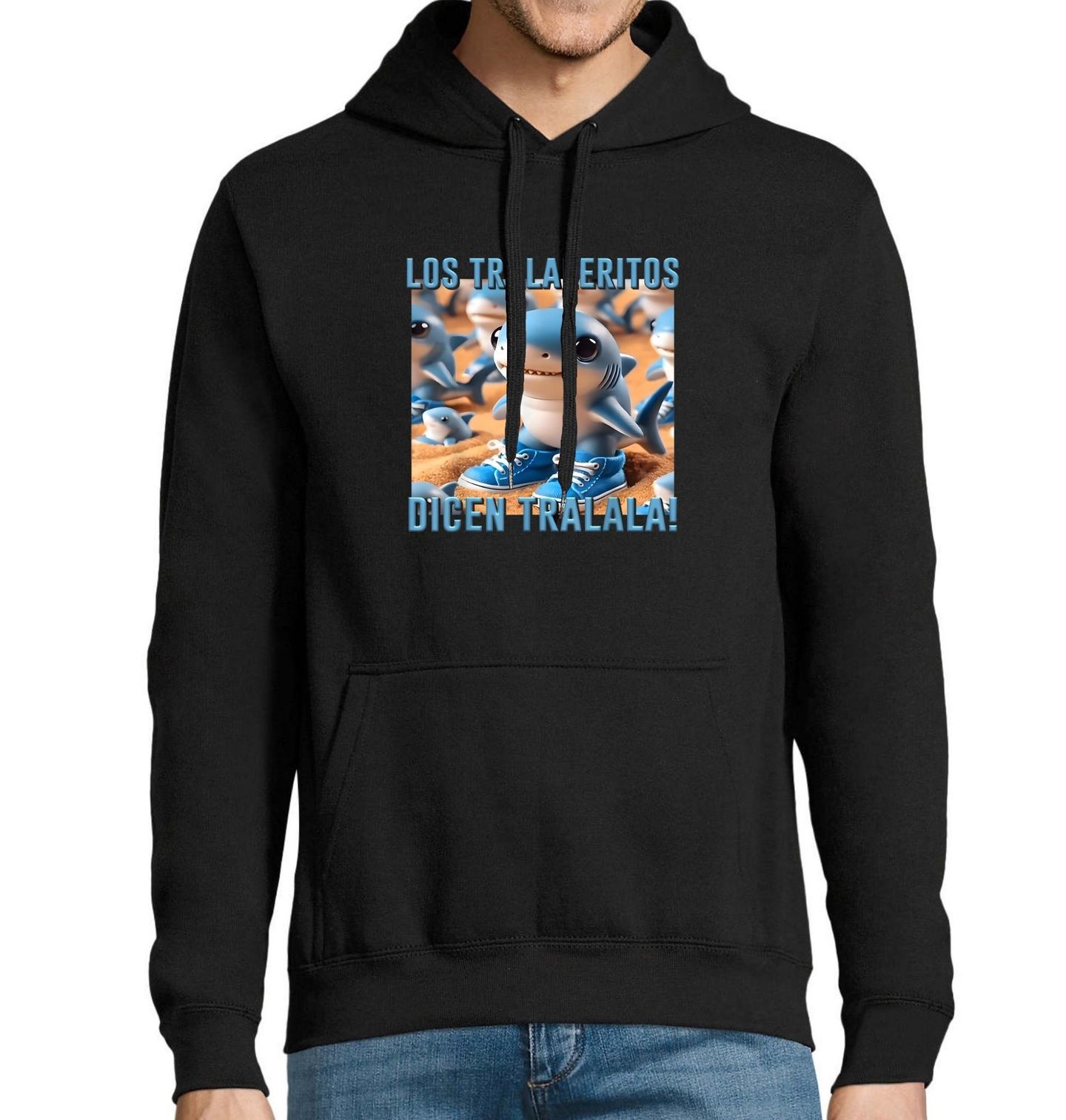 Pánská mikina Los Tralaleritos Dicen Tralala! Jsou malí, modří, mají tenisky a jedinou větu v hlavě: Tralala! Přichází italský brainrot ve své nejroztomilejší formě – partička žraloků jménem Los Tralaleritos. Los Tralaleritos dicen tralala! = Malí Tralalerové říkají tralala! Tohle meme tričko je jako stvořené pro každého, kdo miluje absurdní internetové trendy.