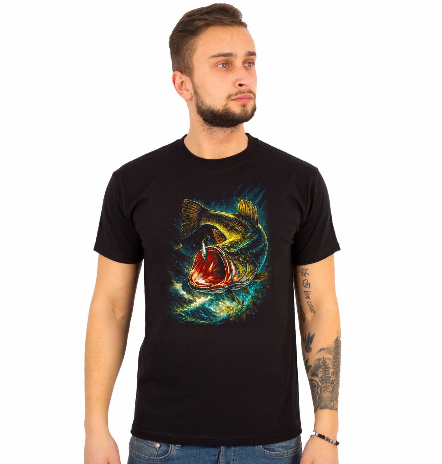 Pánské tričko Lov Okouna říčního. Motiv je ideální volbou pro všechny, pro které je rybaření víc než koníček – je to vášeň, klid i výzva zároveň. Rybář v tomto designu pozná okamžik, kdy přichází záběr, napětí na prutu a souboj s dravou rybou. Okoun patří mezi nejoblíbenější cíle přívlače a tento motiv to vystihuje naprosto přesně.