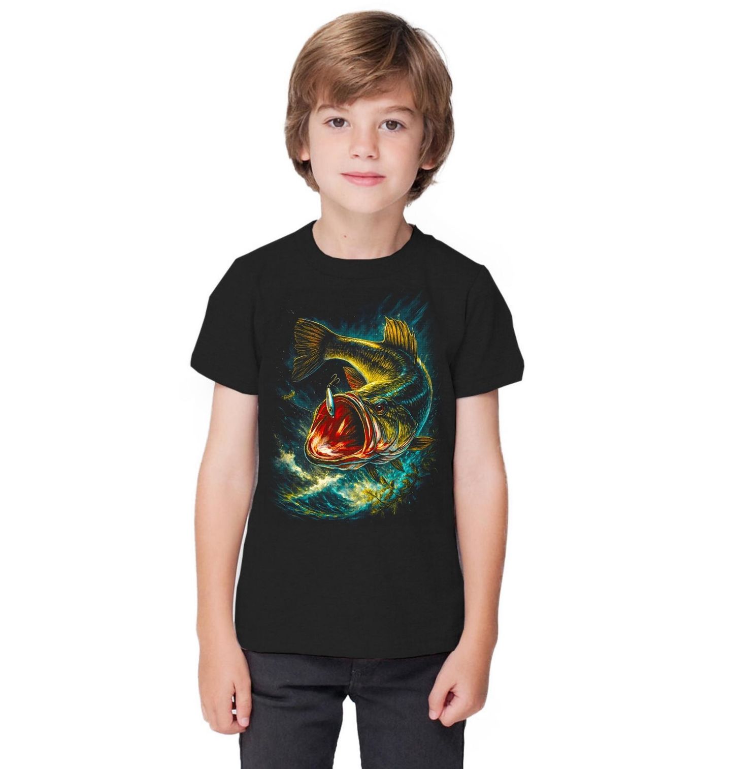Dětské tričko Lov Okouna říčního. Motiv je ideální volbou pro všechny, pro které je rybaření víc než koníček – je to vášeň, klid i výzva zároveň. Rybář v tomto designu pozná okamžik, kdy přichází záběr, napětí na prutu a souboj s dravou rybou. Okoun patří mezi nejoblíbenější cíle přívlače a tento motiv to vystihuje naprosto přesně.