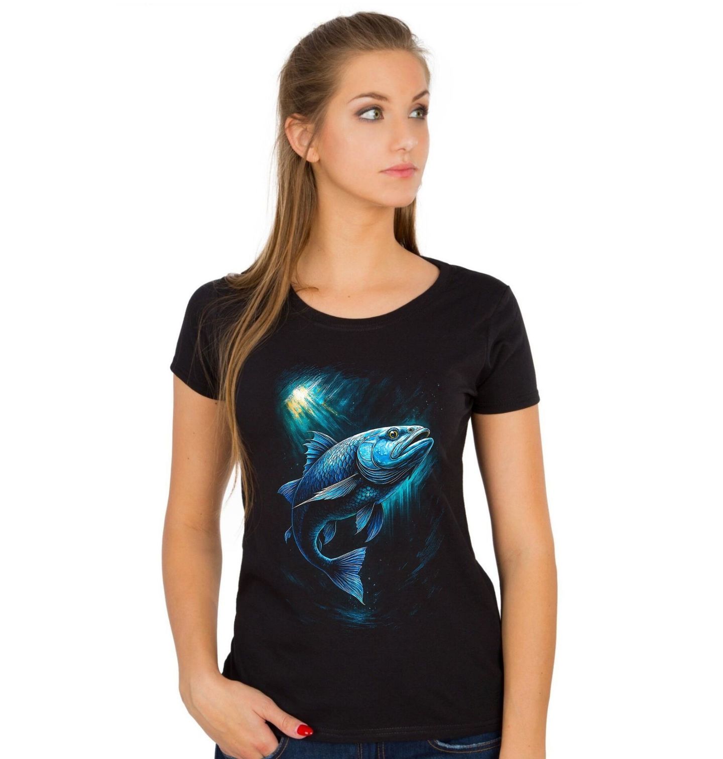 Dámské tričko Lufara dravá. Tento dynamický motiv zobrazuje Pomatomus saltatrix, jednoho z nejagresivnějších mořských predátorů. Silné, hydrodynamické tělo a výrazná tlama plná ostrých zubů dělají z této ryby, symbol rychlosti, síly a nekompromisního útoku. Ilustrace zachycuje okamžik napětí pod hladinou, který dobře znají rybáři, pro které je rybaření vášní a výzvou zároveň.