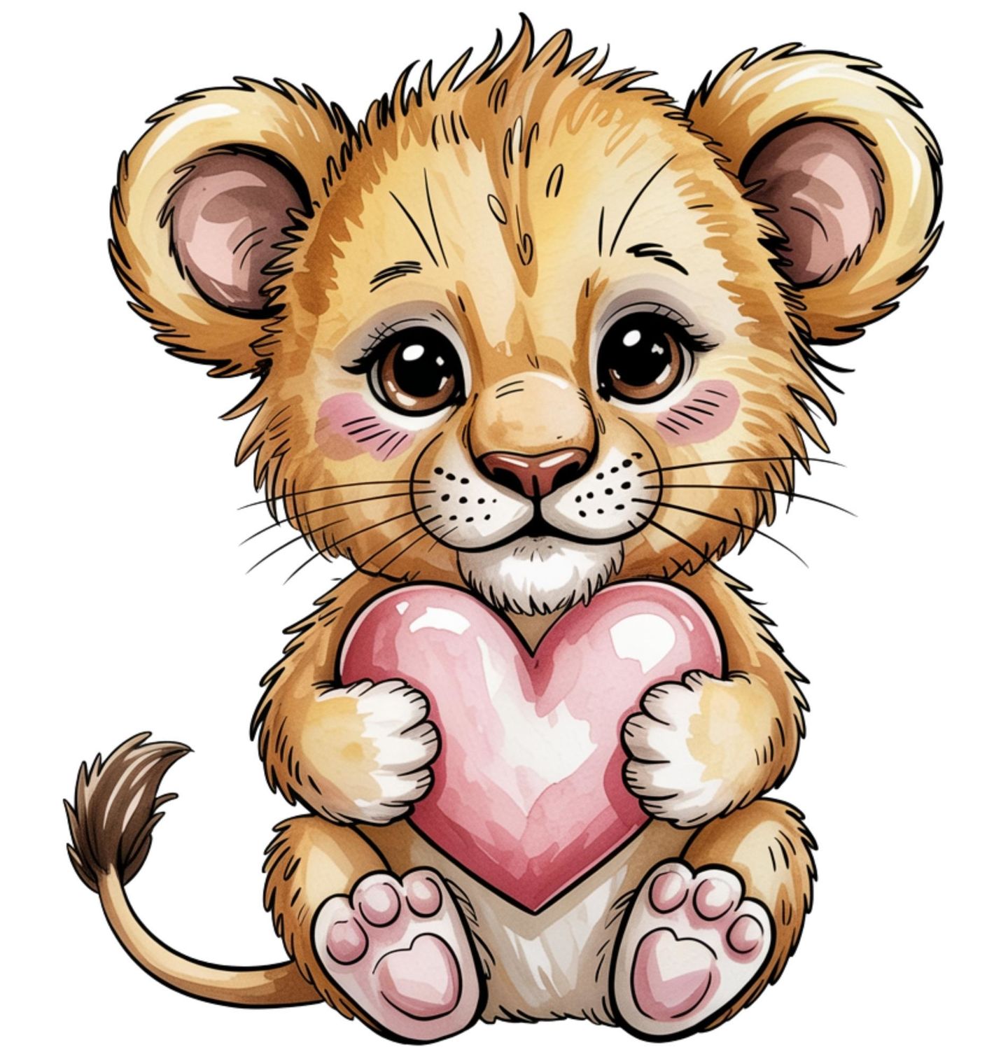 Dámské tričko Lvíče se Srdcem. Malý lev držící růžové srdce působí roztomile, jemně a zároveň hravě. Ilustrace je ideální pro všechny milovníky zvířat, romantiky i sladkých kreslených designů. Kombinace velkých očí, hebkých barev a symbolu lásky vytváří motiv vhodný jako dárek pro partnera, dítě nebo kohokoliv, kdo má rád pozitivní energii.