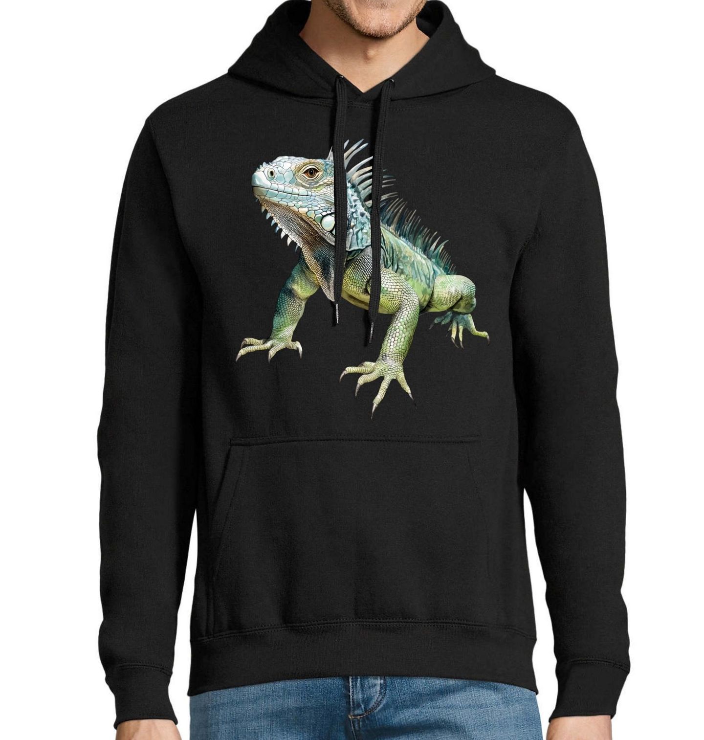 Pánská mikina Majestátní Leguán zelený. Tento realistický motiv zachycuje ještěra v plné síle a přirozené kráse. Precizně vykreslené šupiny, výrazný pohled a typická silueta dávají vyniknout tomu, proč je tento plaz jedním z nejoblíbenějších exotických zvířat chovaných v teráriích. Design osloví každého teraristu, který obdivuje exotiku, přírodu a svět plazů.
