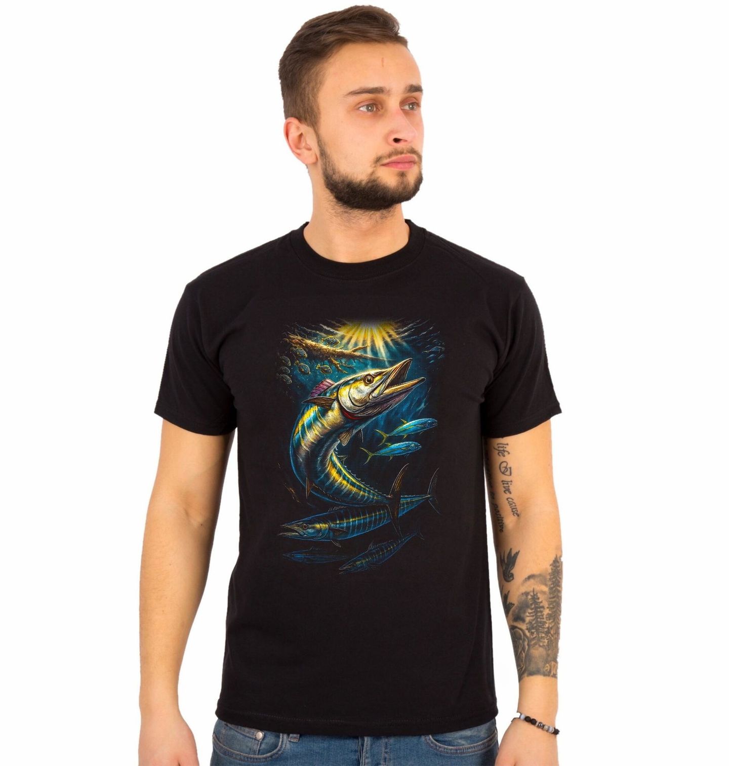 Pánské tričko Makrela Solandrova Wahoo. Rybaření na wahoo patří mezi vrcholné zážitky mořského sportovního lovu. Každý zkušený rybář ví, že po záběru následuje brutální únik a souboj, který prověří vybavení i nervy. Wahoo dokáže útočit v plné rychlosti a její ostré zuby z ní dělají obávaného predátora tropických vod.