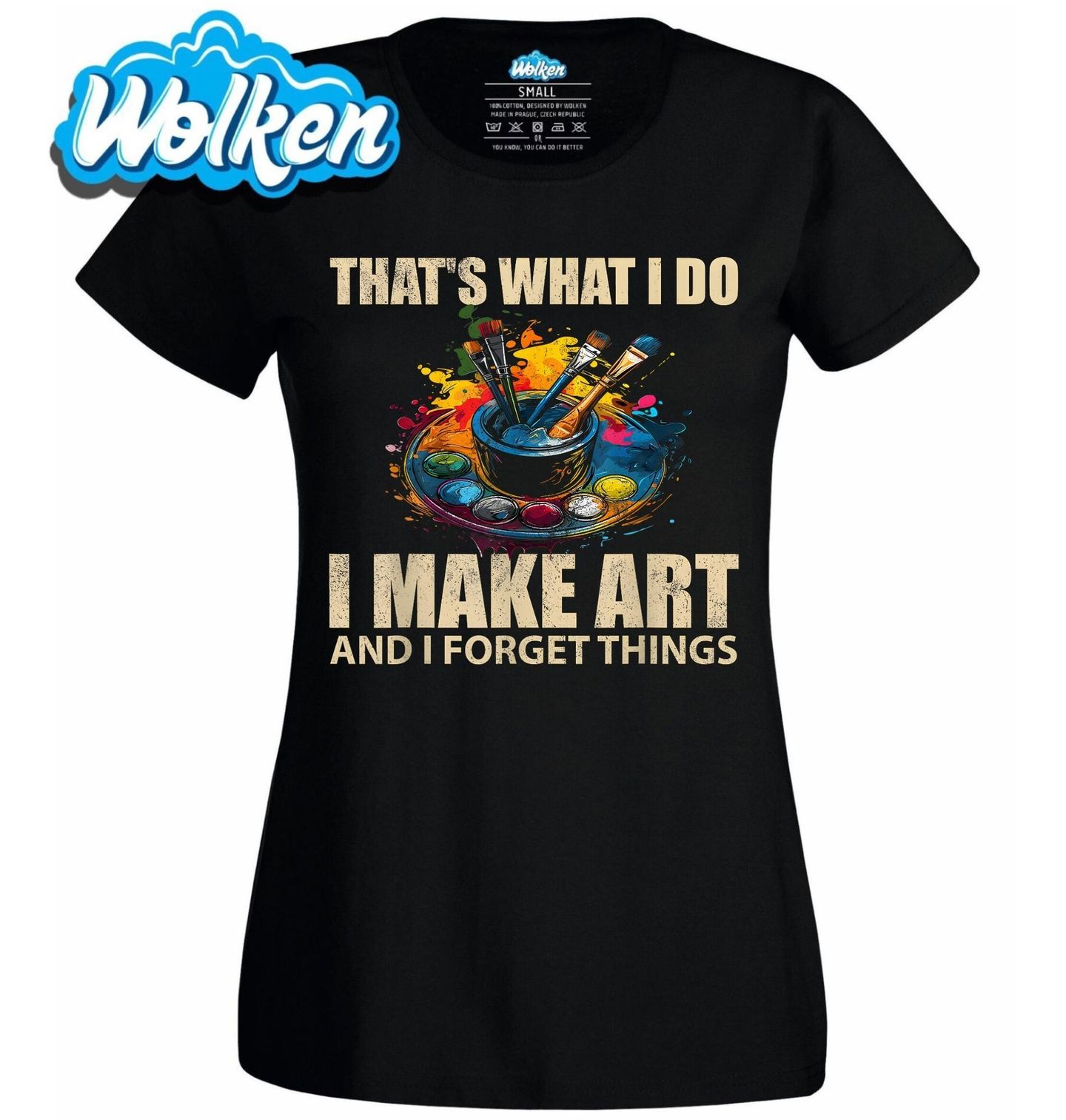 Dámské tričko Malíř - Tvořím umění a zapomínám na věci. "That's what I do. I make art and I forget things." česky „To je to, co dělám. Tvořím umění a zapomínám na věci.“ Objevte vtipný a originální motiv pro každého malíře, výtvarníka nebo kreativní duši, která ví, že umění je nejen o tvorbě, ale i o tom na chvíli vypnout mozek a zapomenout na svět.