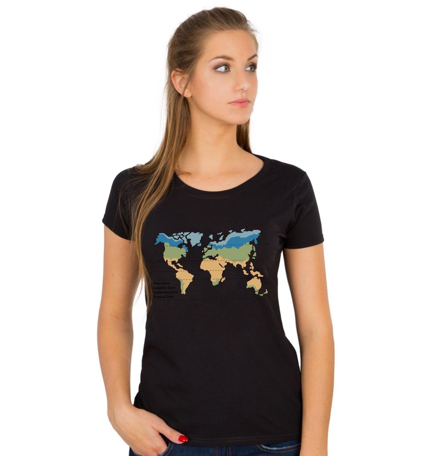 Dámské tričko Mapa světa Klimatické Pásy