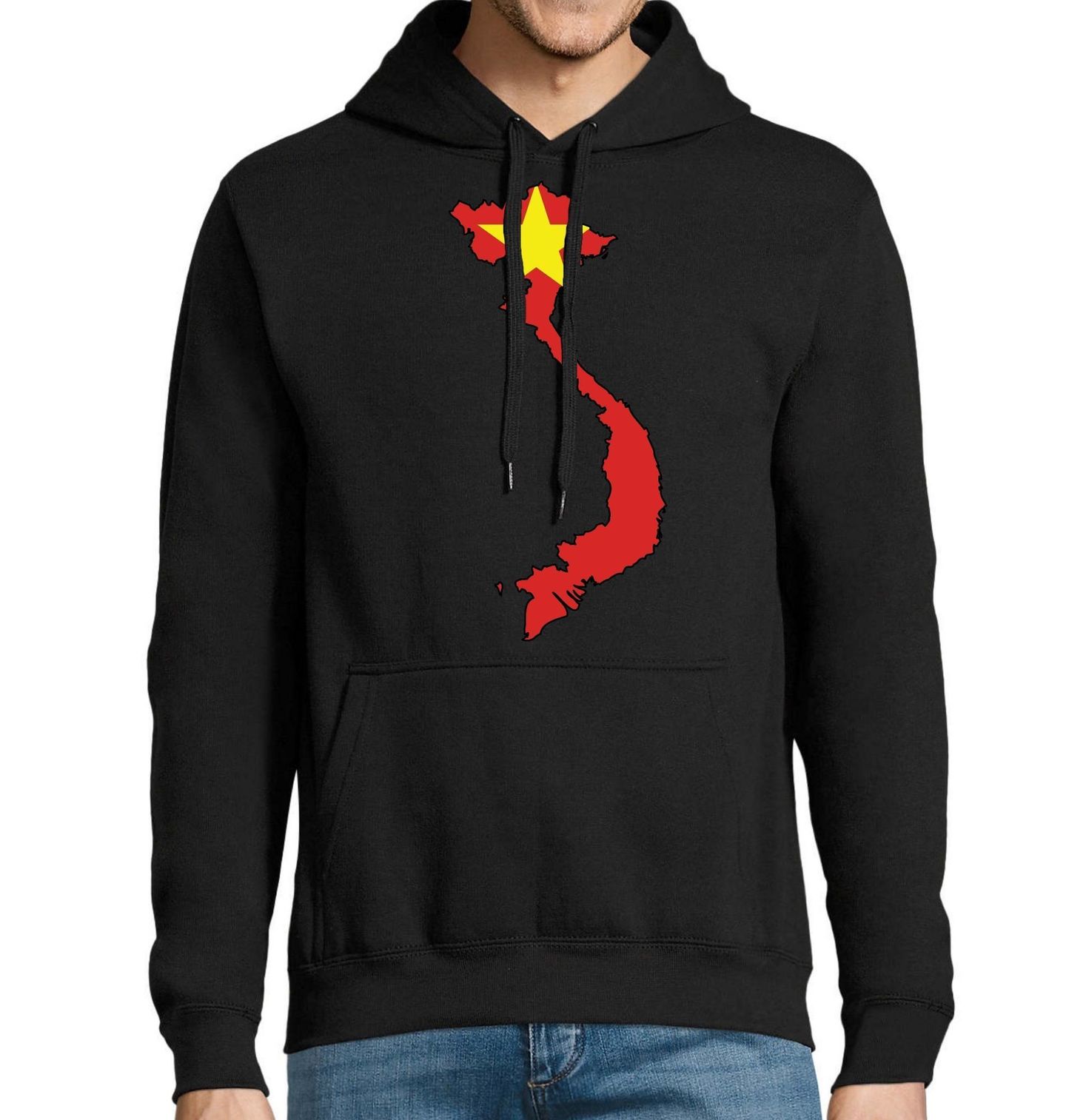 Pánská mikina Mapa Vietnamu. Silný vizuální motiv spojuje tvar, který představuje mapa státu, s barvami a symbolem národní vlajky. Tento design jasně vyjadřuje hrdost, identitu a vztah k zemi, jakou je Vietnam, ležící v srdci regionu Asie. Motiv je ideální pro všechny, kteří mají blízký vztah k Vietnamu – ať už skrze původ, rodinu, cestování nebo obdiv k asijské kultuře.