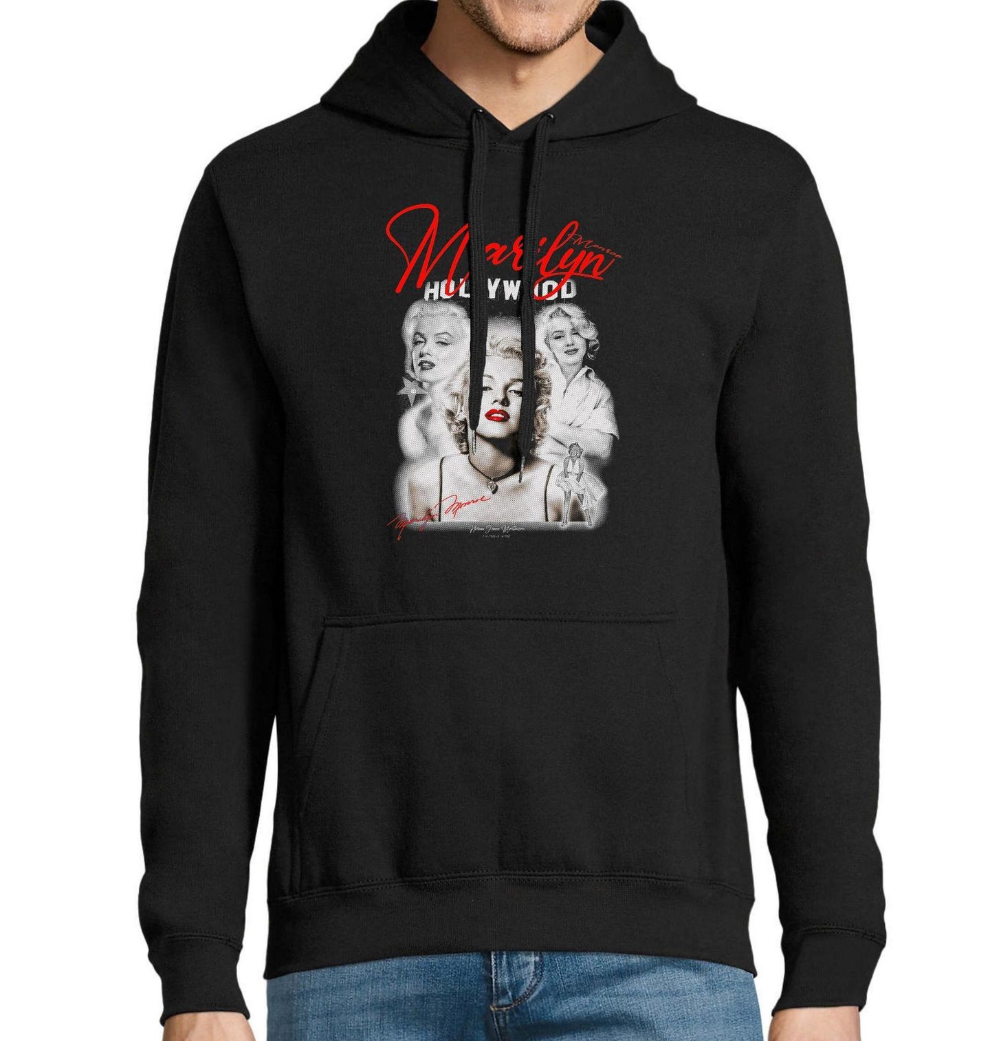 Pánská mikina Marilyn Monroe Hollywood. Elegantní motiv s Marilyn Monroe připomíná jednu z nejikoničtějších žen filmové historie. Kombinace černobílého stylu s výraznými červenými akcenty vytváří silný retro dojem a podtrhuje její nadčasovou krásu. Ideální volba pro milovníky vintage módy, starého Hollywoodu a kouzla ženské elegance.