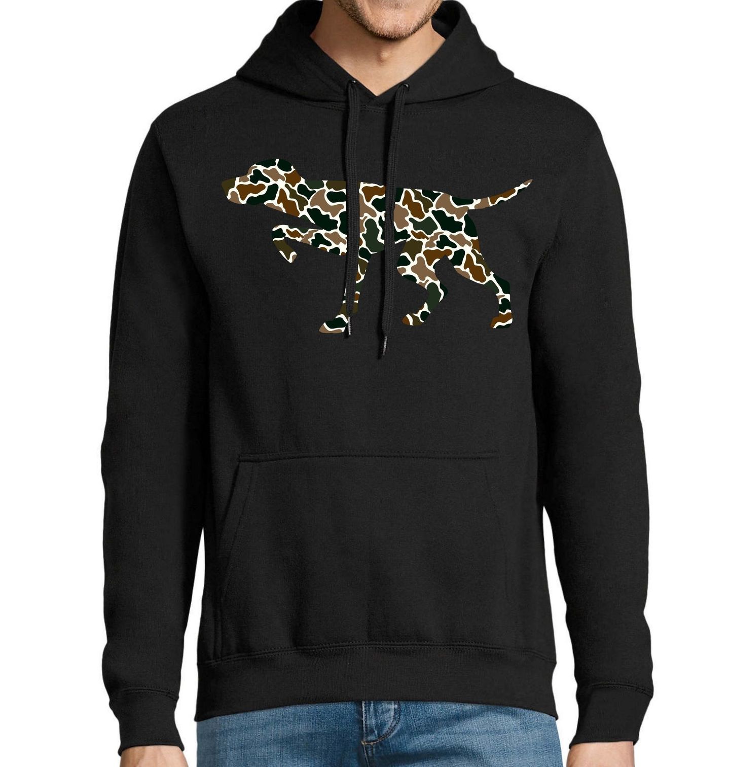 Pánská mikina Maskovaný Německý ohař krátkosrstý. Tento pes je původem z Německa. Jde o nejvyužívanějšího ohaře a všestranné lovecké plemeno s vynikajícími loveckými vlastnostmi. Tento design je ideální pro každého, kdo je hrdý pejskař a chce vyjádřit vztah ke svému čtyřnohému parťákovi. Motiv spojuje eleganci a lovecký charakter plemene Německý ohař krátkosrstý, a proto se hodí na každodenní nošení i jako originální dárek.