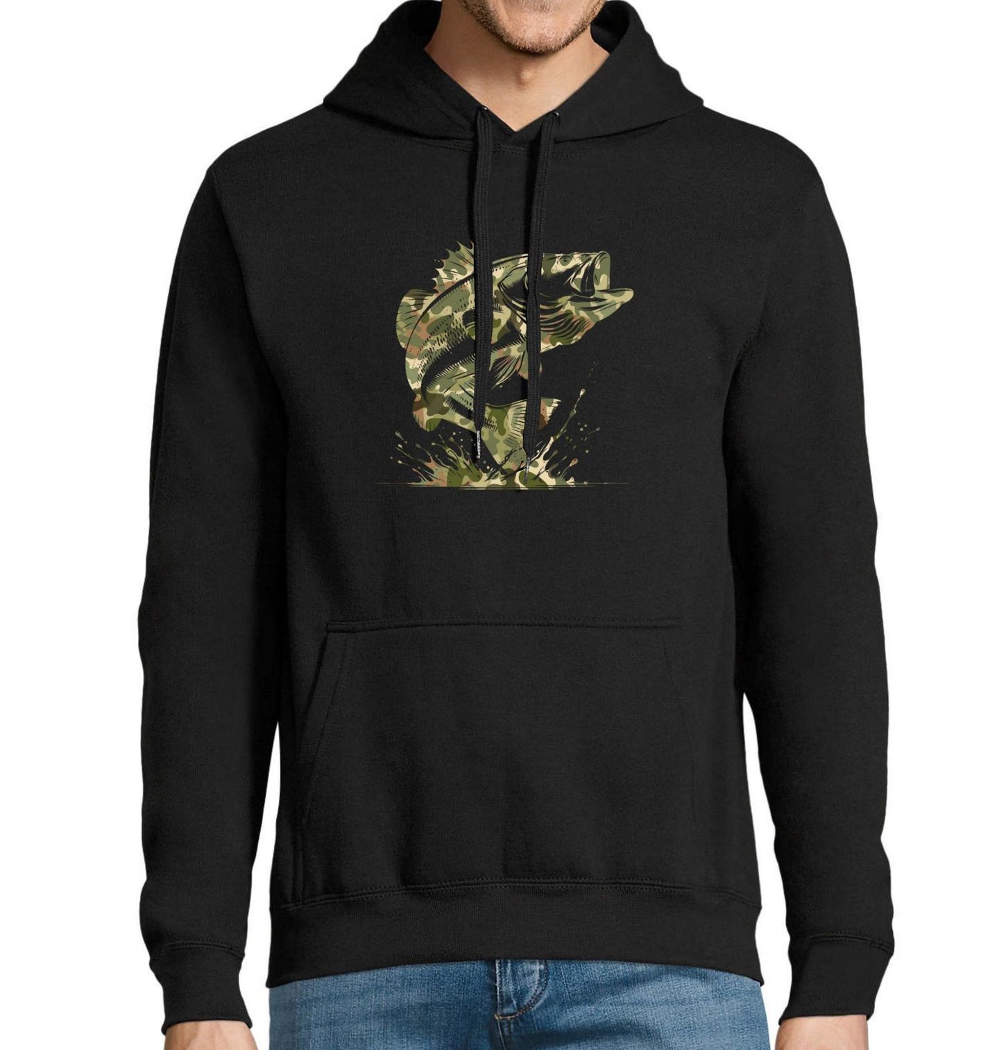 Pánská mikina Maskovaný Okoun. Tahleta ryba není jen tak ledajaká – jde o okouna velkého (neboli largemouth bass) v netradičním maskovacím provedení, ideálním pro každého tvrdého rybáře, co má rád styl i v lese i u vody. Design spojuje vášeň pro rybaření, taktiku a lovecký instinkt.