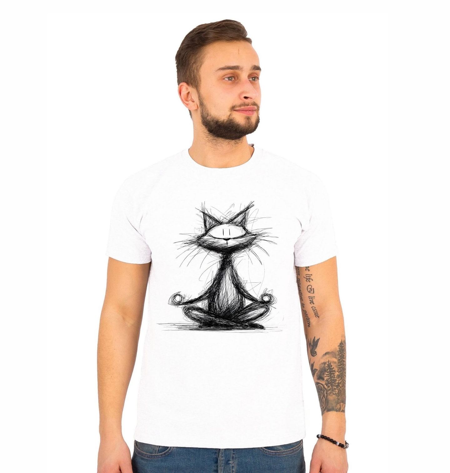 Pánské tričko Meditující Kočka Skica
