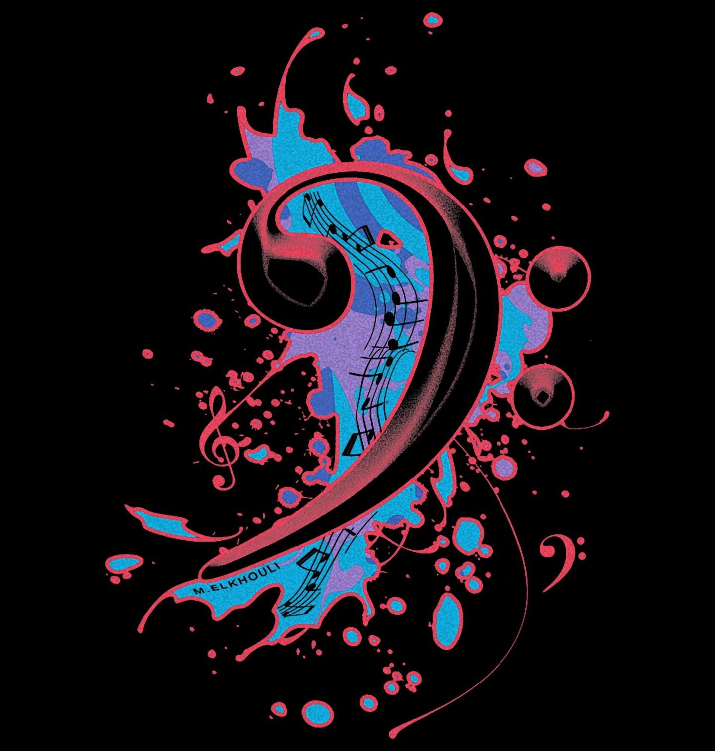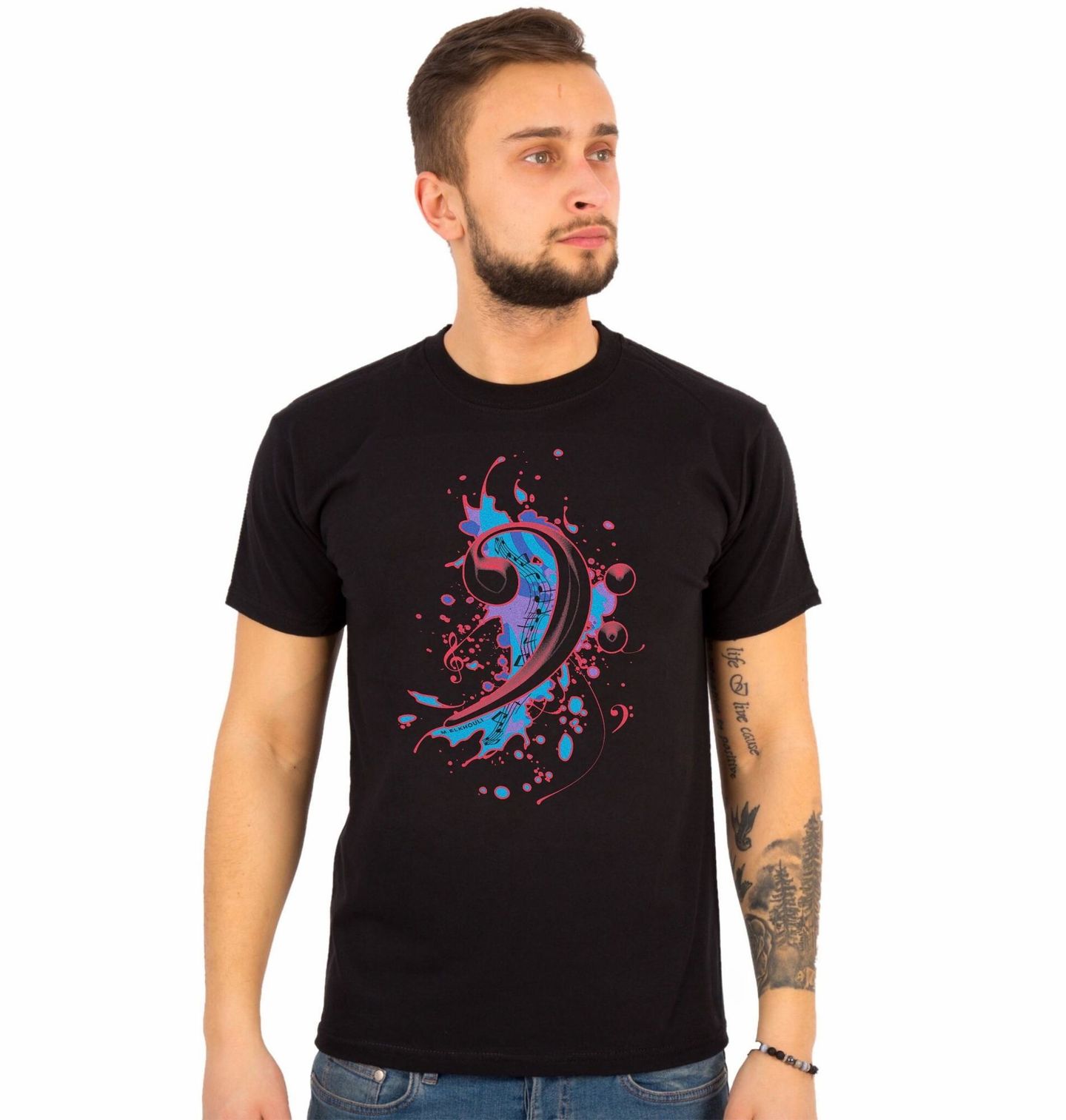 Pánské tričko Melodie Basového Klíče. Energie, barvy a hudba v jednom výbušném designu. Tento výrazný motiv staví do centra dění Basový Klíč, který symbolizuje sílu hlubokých tónů a pevný základ každé skladby. Dynamické barevné cákance a notová osnova v pozadí vytvářejí dojem pohybu, vášně a nespoutané kreativity. Basový Klíč zde nepůsobí jen jako hudební znak, ale jako umělecký prvek plný emocí.