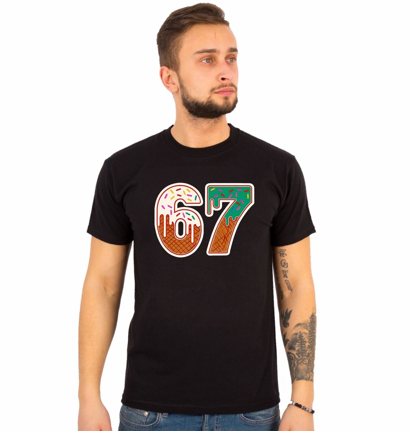 Pánské tričko Meme Zmrzlina 67 Six Seven. Když se spojí zmrzlina, barvy a virální číslo, vznikne zmrzlinové meme 67 přináší sladký vizuál s křupavým kornoutem, barevnou polevou a číslem, které ovládlo internet – 6 a 7, známé jako virální meme z TikToku. Číslo 67 se stalo fenoménem v roce 2025 díky hudebnímu trendu, basketbalu a TikTok editační scéně.