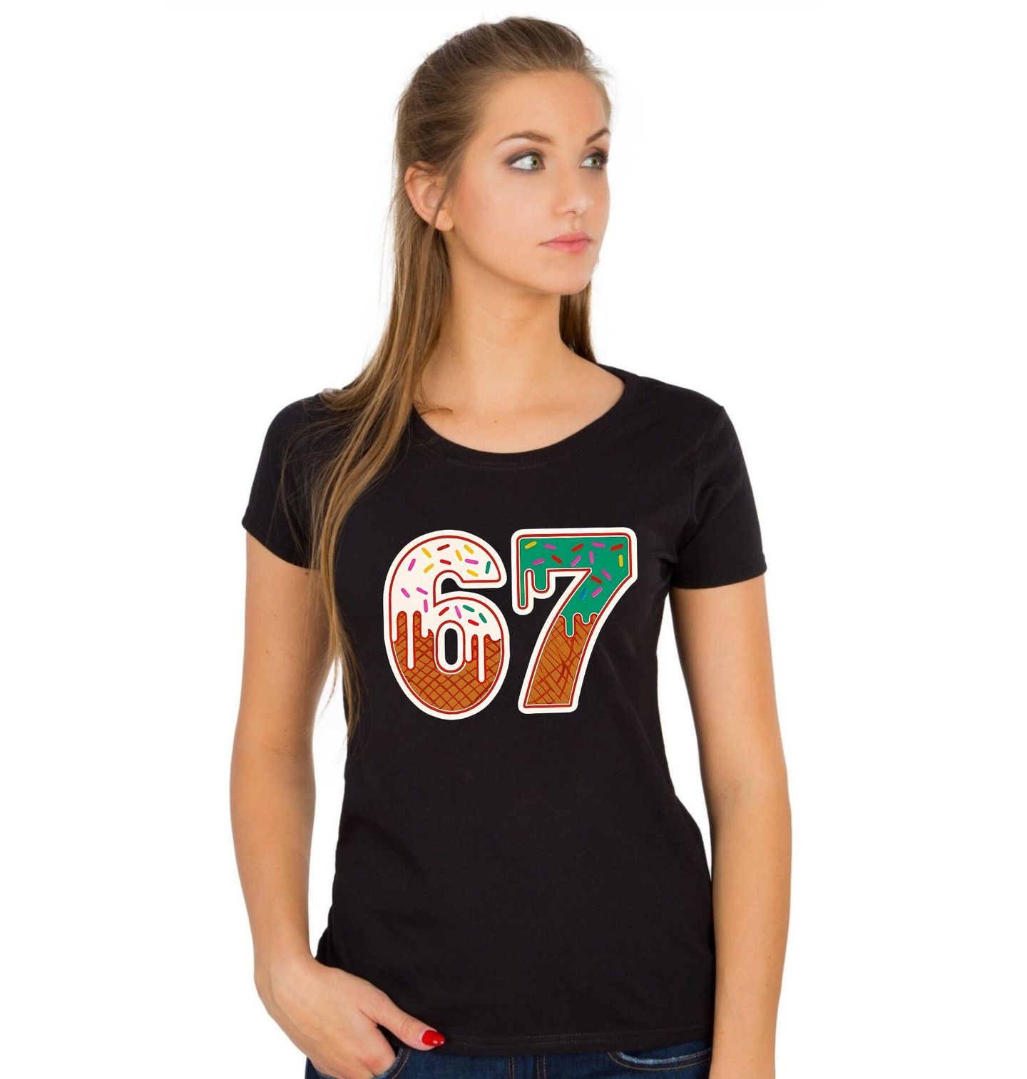 Dámské tričko Meme Zmrzlina 67 Six Seven. Když se spojí zmrzlina, barvy a virální číslo, vznikne zmrzlinové meme 67 přináší sladký vizuál s křupavým kornoutem, barevnou polevou a číslem, které ovládlo internet – 6 a 7, známé jako virální meme z TikToku. Číslo 67 se stalo fenoménem v roce 2025 díky hudebnímu trendu, basketbalu a TikTok editační scéně.