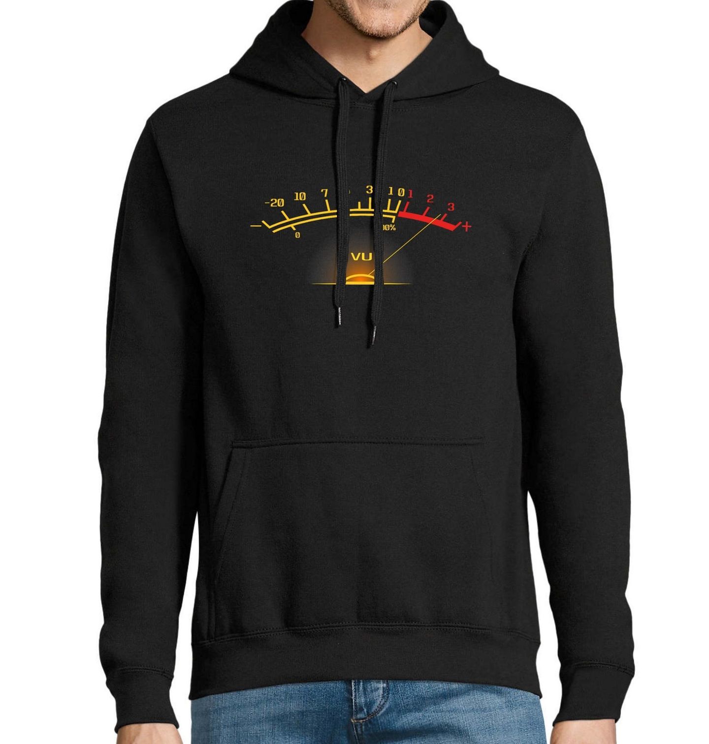 Pánská mikina Měřič Hlasitosti VU Metr. Motiv pro každého, kdo to rád pouští nahlas – ať už v nahrávacím studiu, na pódiu nebo v autě. Stylizovaný analogový VU metr s ručičkou v červené zóně symbolizuje maximální výkon, hlasitost i energii. Skvělé pro milovníky hudby, DJ, zvukaře, ale i fanoušky pořádného audiosystému.