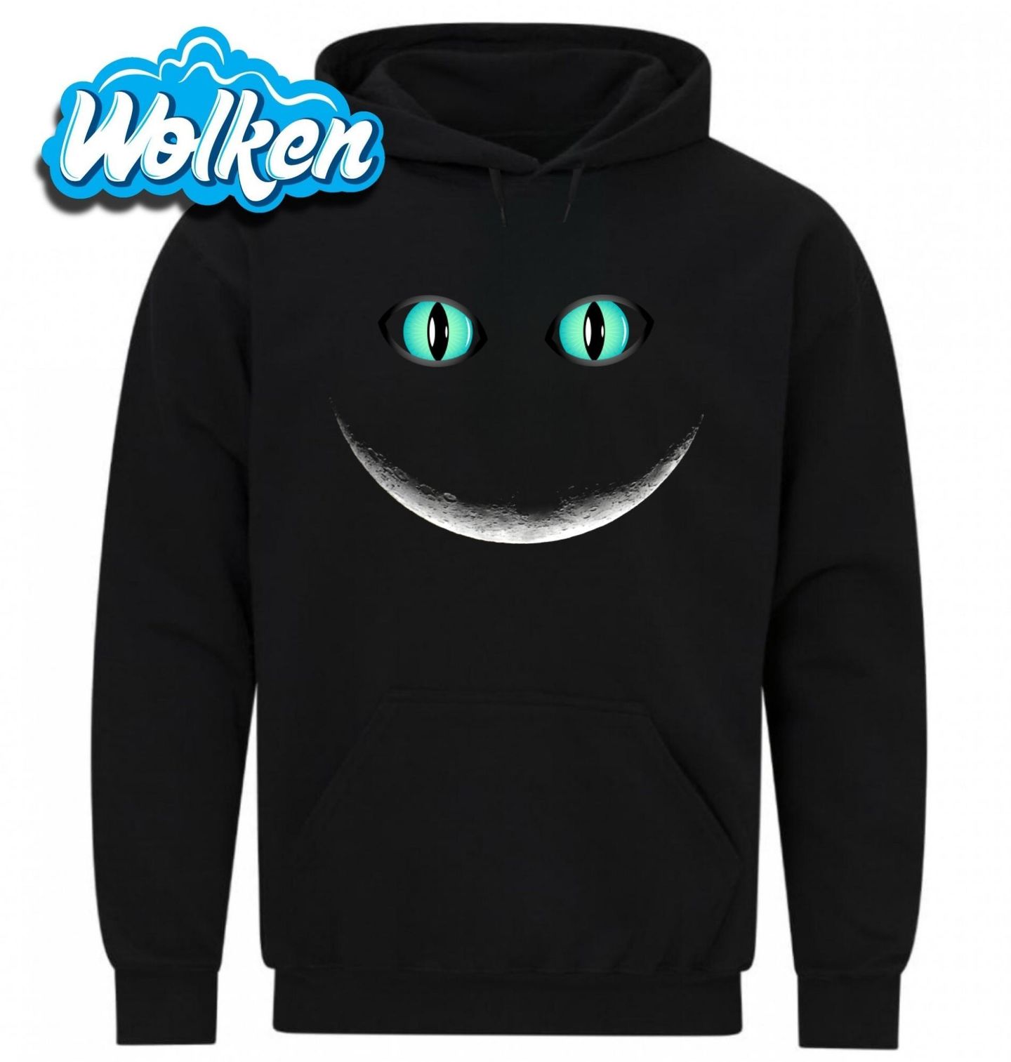 Pánská mikina Měsíční Kočka Šklíba. Ponořte se do říše snů a iluzí s tímto originálním tričkem inspirovaným Kočkou Šklíbou z Alenky v říši divů. Zářivě modré oči a srpek měsíce ve tvaru úsměvu tvoří tajemnou siluetu, která zaujme každého milovníka fantazie, noci a špetky šílenství. Tričko s motivem měsíce a kočky ideální pro fanoušky nočních výjevů, temného humoru a magické atmosféry.