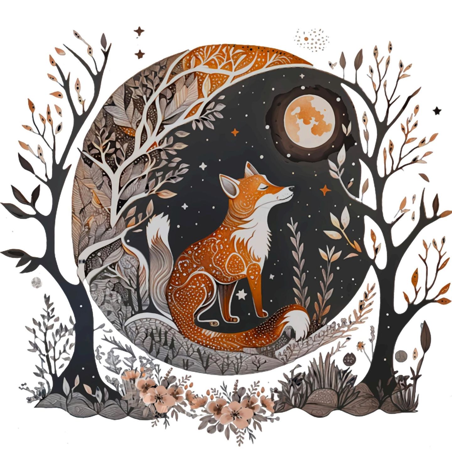 Pánské tričko Měsíční Liška v Lese. Objevte kouzelný motiv Liška pod Měsícem, který zachycuje klidnou noc uprostřed lesa, kdy elegantní liška pozoruje zářící měsíc na noční obloze. Tato ilustrace je plná detailů a jemné harmonie mezi přírodou a mystikou noci.