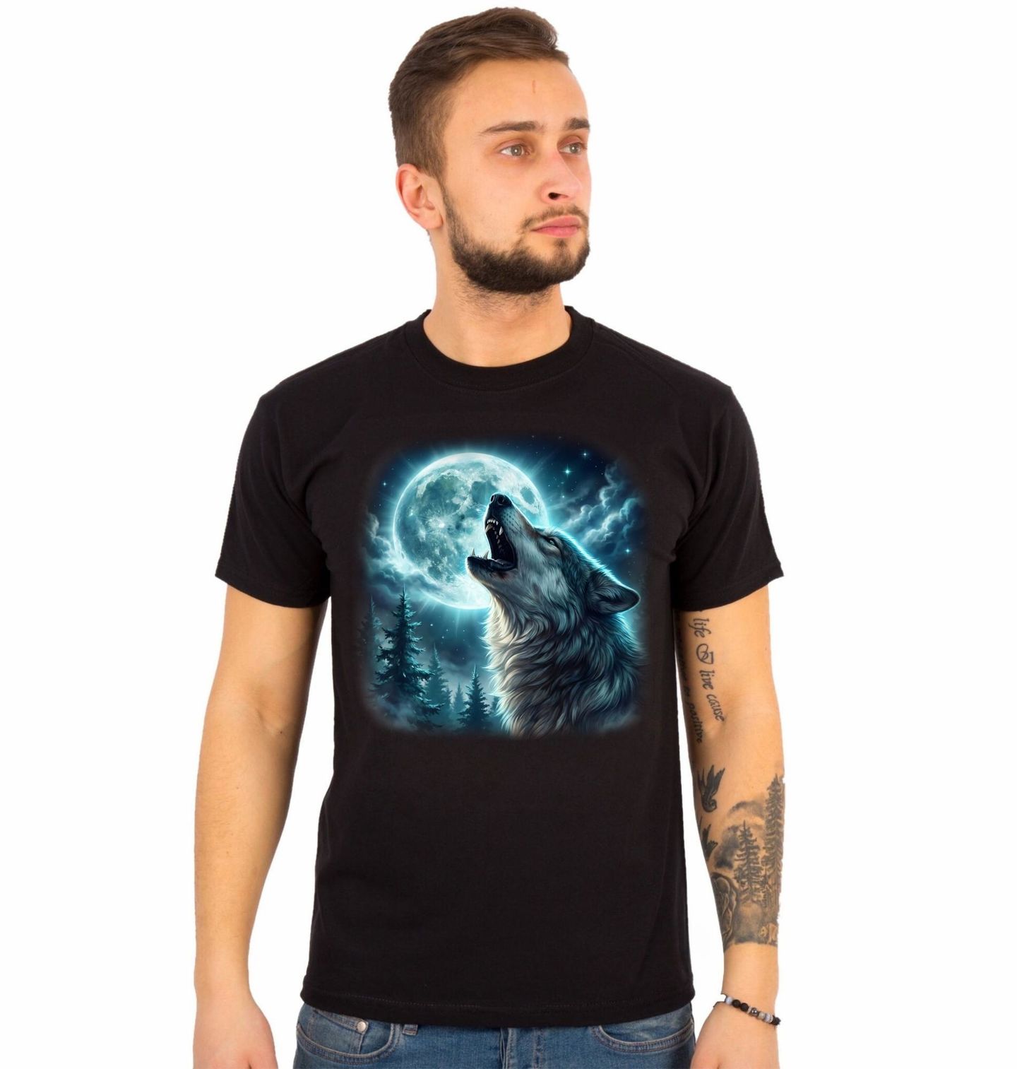 Pánské tričko Měsíční Píseň Vlka. Tajemný motiv, kde vlk pozvedá hlas k noční obloze, zachycuje sílu přírody, svobodu a instinkt. Tento výrazný design propojuje vlci energii s mystickou atmosférou, kterou vytváří zářící měsíc na temném nebi. Ideální pro každého, koho fascinuje divoká příroda, symbolika smečky a noční krajina. Motiv v sobě nese klid i sílu – vlk jako ochránce a měsíc jako věčný průvodce noci.