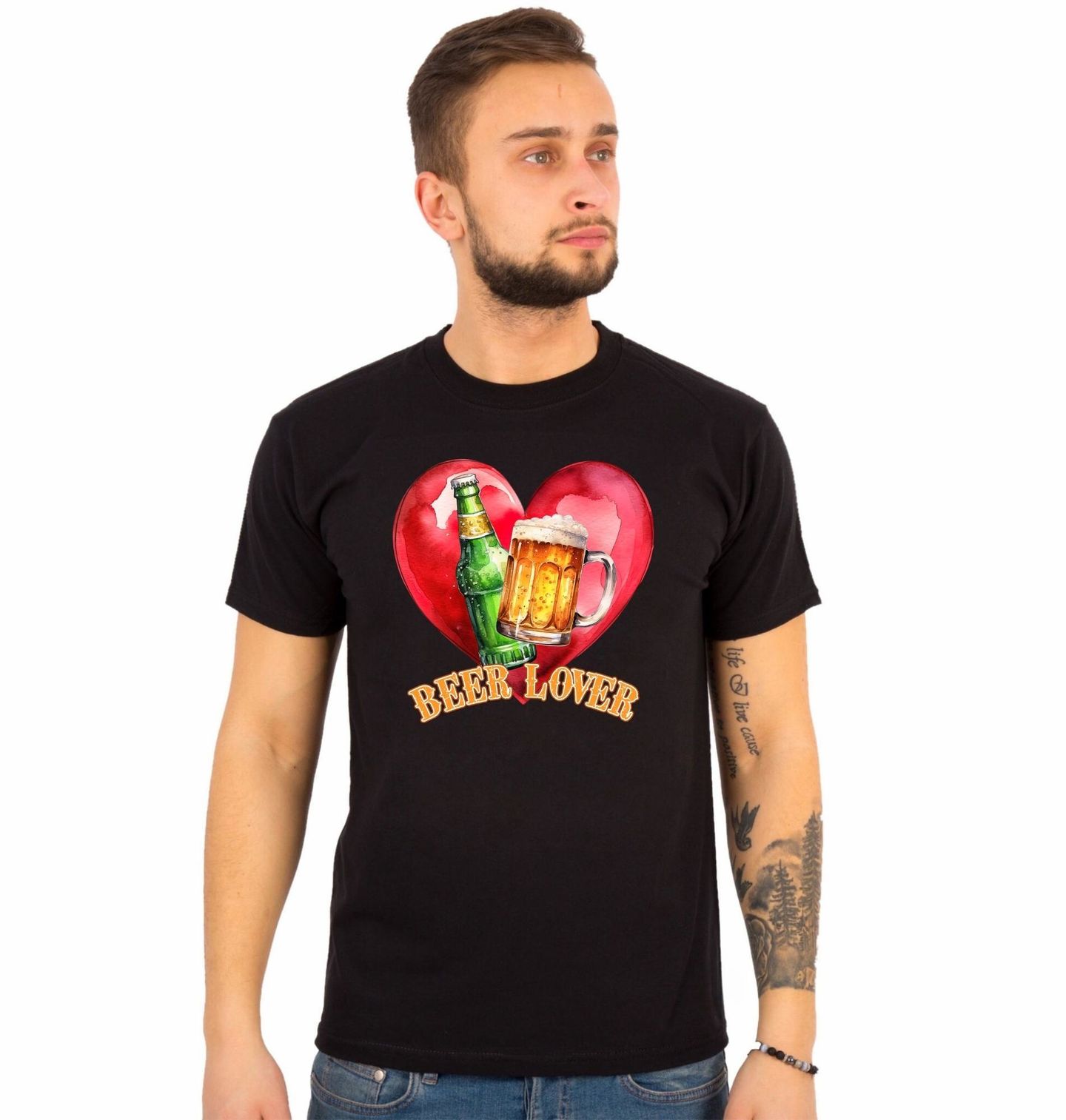 Pánské tričko Milovník piva Beer Lover. Stylový motiv pro každého, kdo ví, že pivo je srdeční záležitost. Design zobrazuje červené srdce, půllitr zlatavého piva a láhev, doplněné nápisem „Beer Lover“, tedy „Milovník piva“. Kombinace romantického motivu a oblíbeného nápoje vytváří originální grafiku vhodnou na každodenní nošení i jako vtipný dárek.