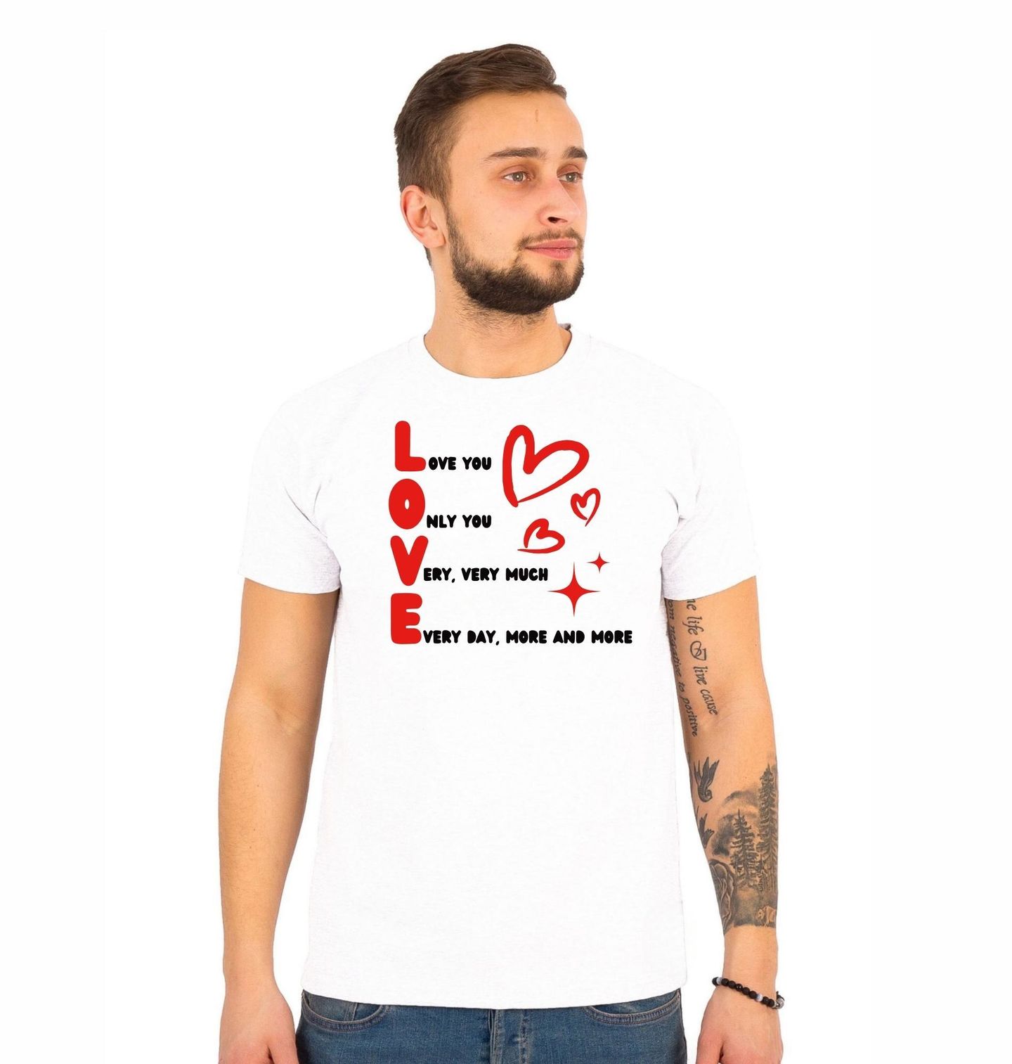 Pánské tričko Miluji tě Love You Only You. “Love you, only you, very, very much, every day, more and more.” znamená „Miluji tě, jen tebe, velmi, velmi moc, každý den, čím dál víc.“ Jednoduchý, ale silný motiv, který dokonale vyjadřuje emoce. Velké písmeno LOVE doplněné roztomilými srdíčky a milým textem vytváří design plný pozitivní energie a náklonnosti.