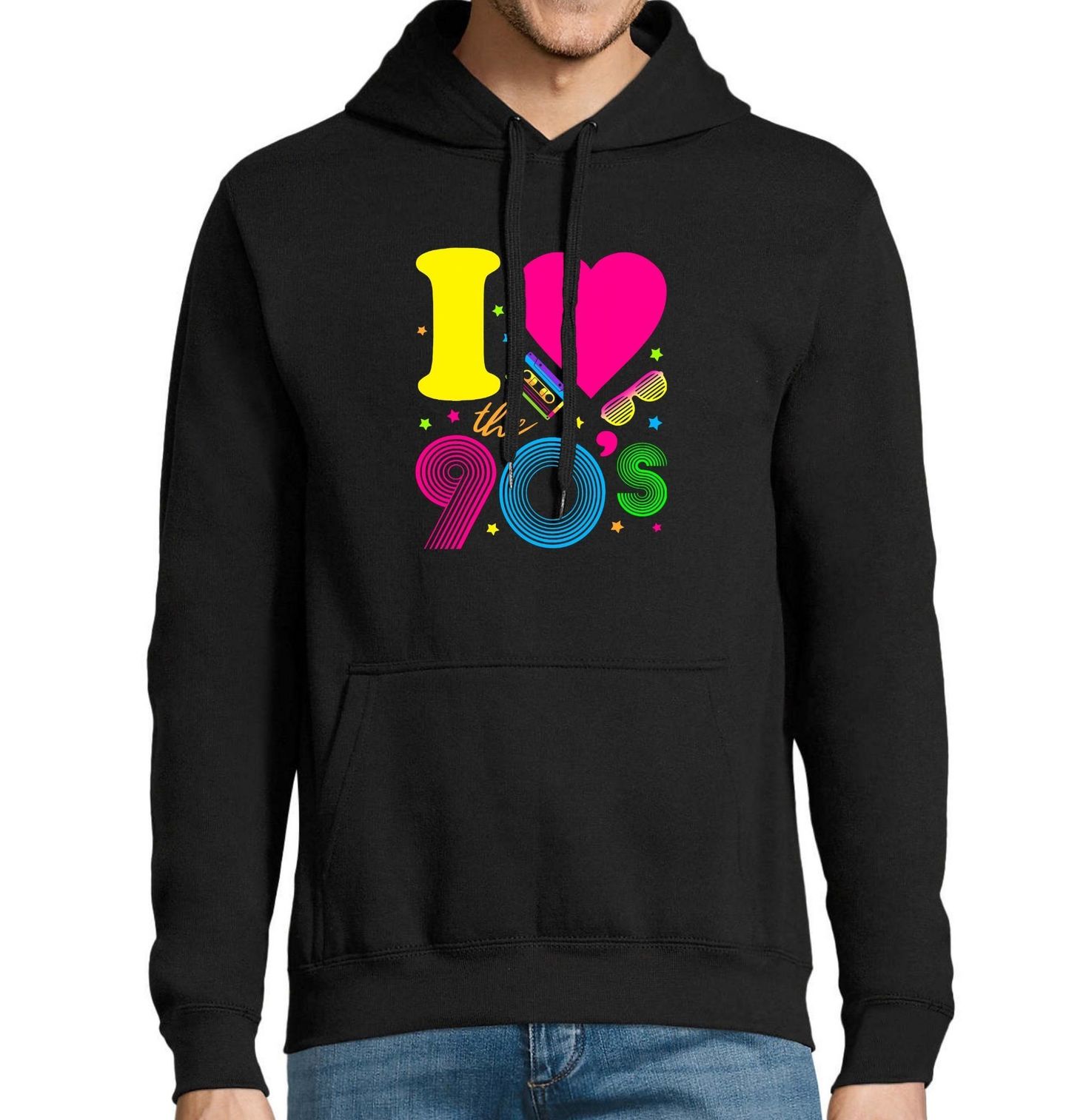 Pánská mikina Miluju devadesátky I Love the 90’s Retro. Tričko s motivem „I ♥ the 90’s“ je poctou éře, kdy kazety vládly světu a hudba měla opravdový groove. Výrazné barvy, retro brýle a stará dobrá devadesátková nálada – ideální pro všechny, kdo milují 90. léta, jejich hudbu a neopakovatelný styl.