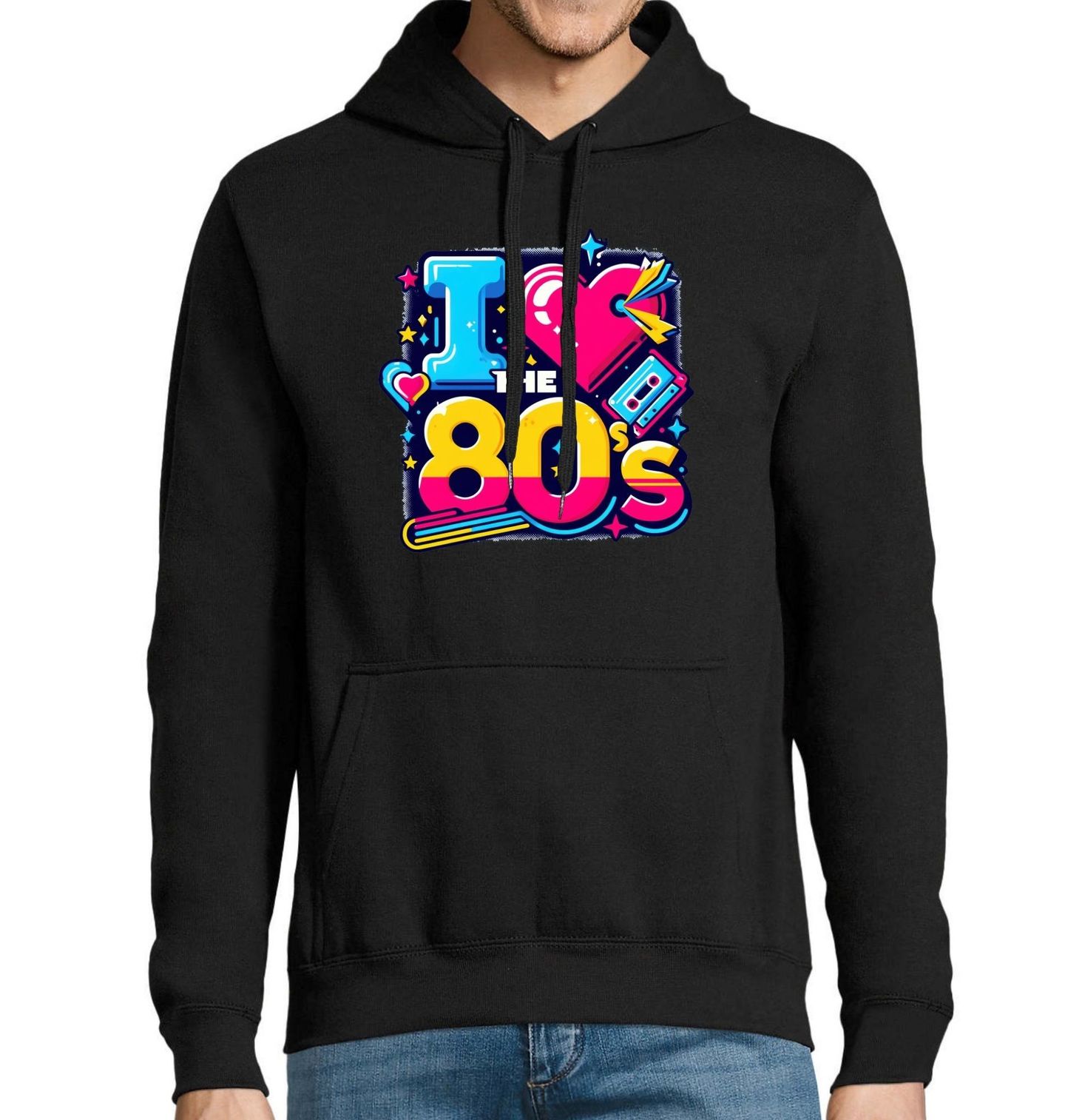 Pánská mikina Miluju Osmdesátky I Love the 80's Retro. Výbuch barev, kazeta, srdce a styl – oslava toho nejlepšího, co přinesly osmdesátky. Dokonalé retro, které ožívá v každém detailu a připomíná dobu, kdy hudba hrála z walkmanů a móda neznala hranice. Pro všechny milovníky osmdesátek, kteří chtějí nosit nostalgii s pořádnou dávkou stylu.