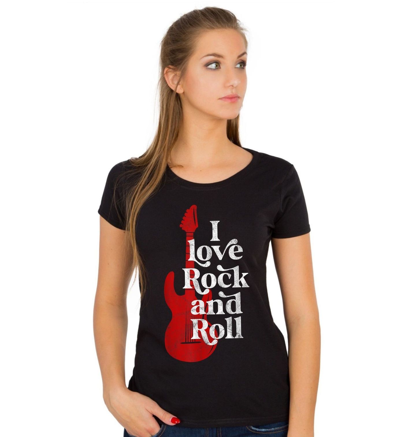 Dámské tričko Miluju Rock and Roll I Love Rock and Roll. Elektrická kytara s výrazným nápisem „I Love Rock and Roll“ je jasným vyjádřením lásky k hudbě. Design spojuje energii koncertů, nespoutanou párty atmosféru a nadčasový rock and roll styl, který nikdy nevyjde z módy. Tento motiv je ideální pro každého, kdo žije hudbou, miluje hlasitý zvuk kytary a ví, že správná párty začíná tam, kde hraje rock and roll.