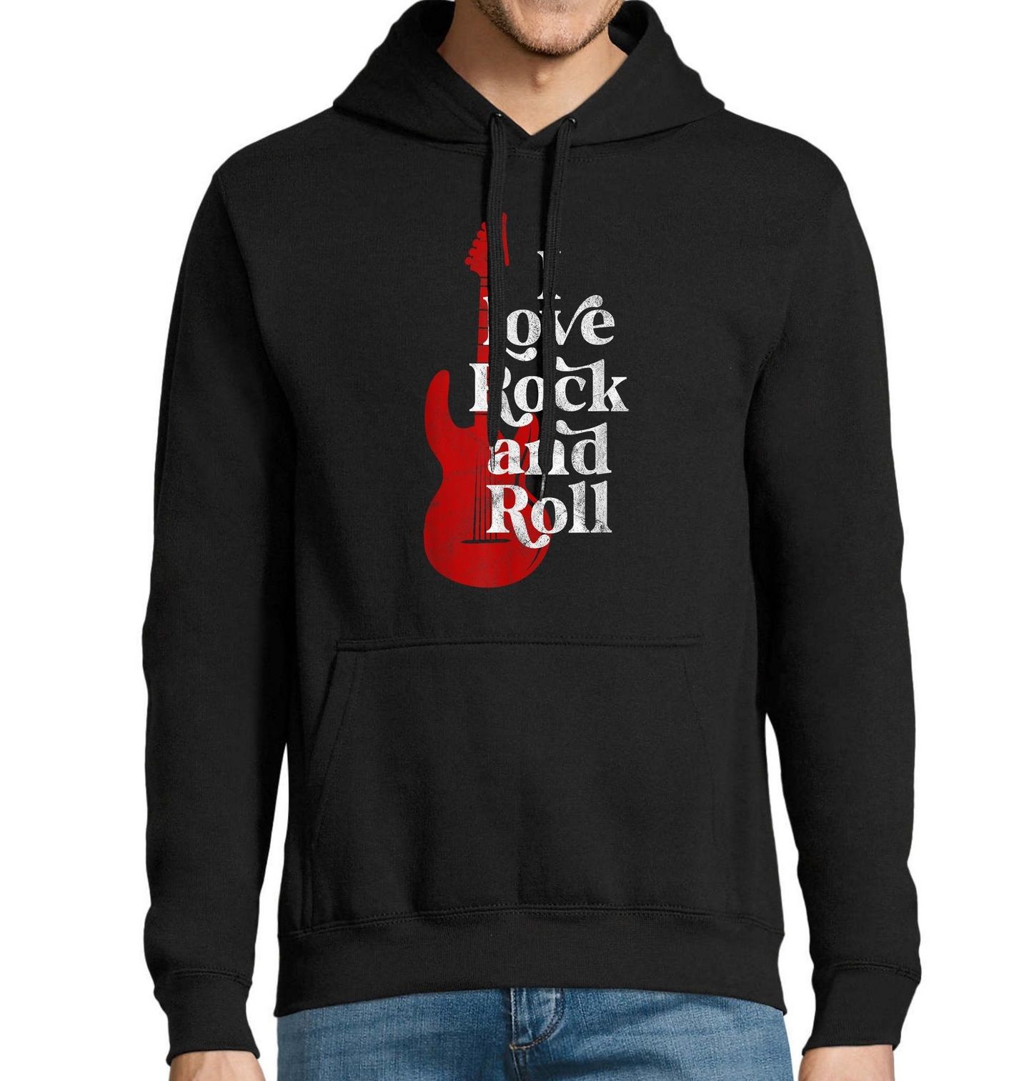 Pánská mikina Miluju Rock and Roll I Love Rock and Roll. Elektrická kytara s výrazným nápisem „I Love Rock and Roll“ je jasným vyjádřením lásky k hudbě. Design spojuje energii koncertů, nespoutanou párty atmosféru a nadčasový rock and roll styl, který nikdy nevyjde z módy. Tento motiv je ideální pro každého, kdo žije hudbou, miluje hlasitý zvuk kytary a ví, že správná párty začíná tam, kde hraje rock and roll.