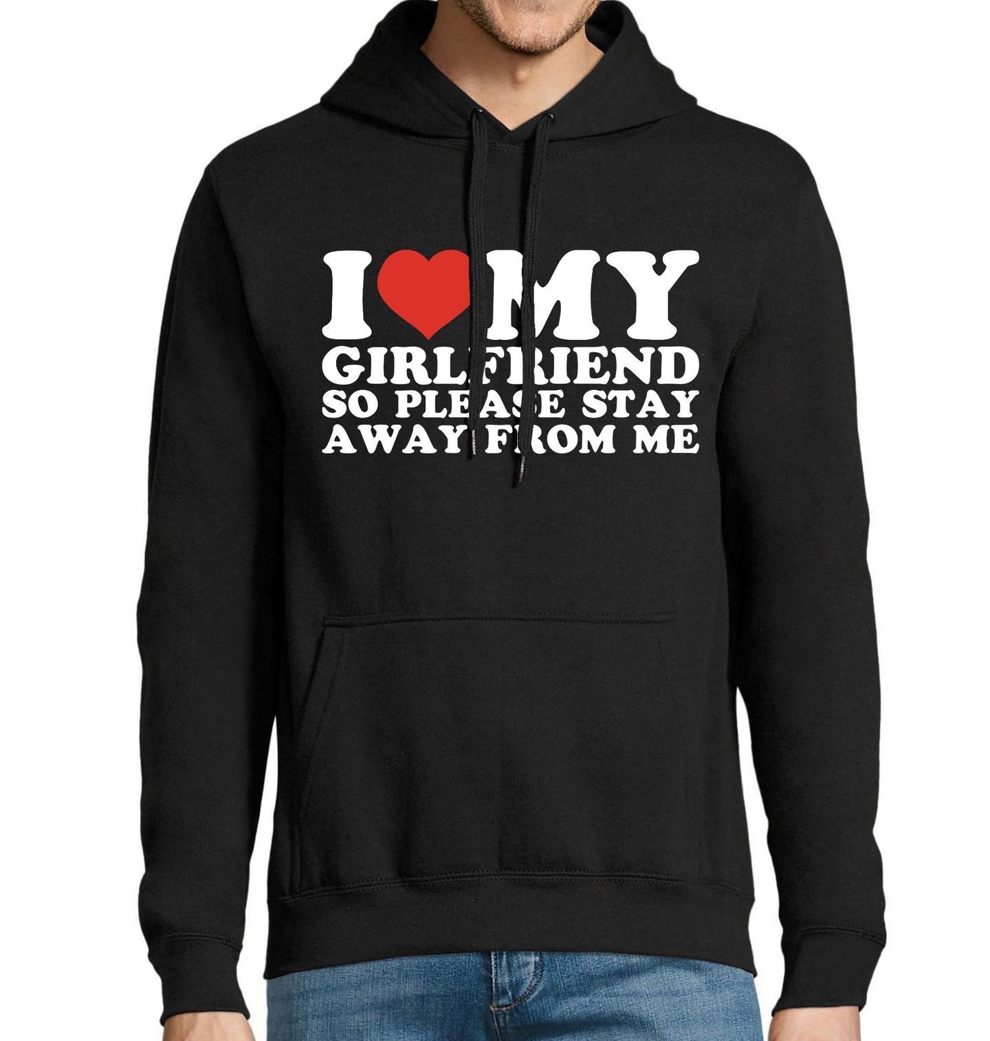 Pánská mikina Miluju svoji přítelkyni, takže se ode mě prosím drž dál. Vtipný textový motiv s romantickým nadhledem ukazuje, že láska může mít i humornou stránku. Dominantní nápis „I love My Girlfriend So Please Stay Away From Me“ znamená v překladu „Miluju svoji přítelkyni, takže se ode mě prosím drž dál.“ Jednoduchý design je ideální pro každého, kdo chce dát stylově najevo oddanost partnerce a zároveň pobavit své okolí originálním potiskem.