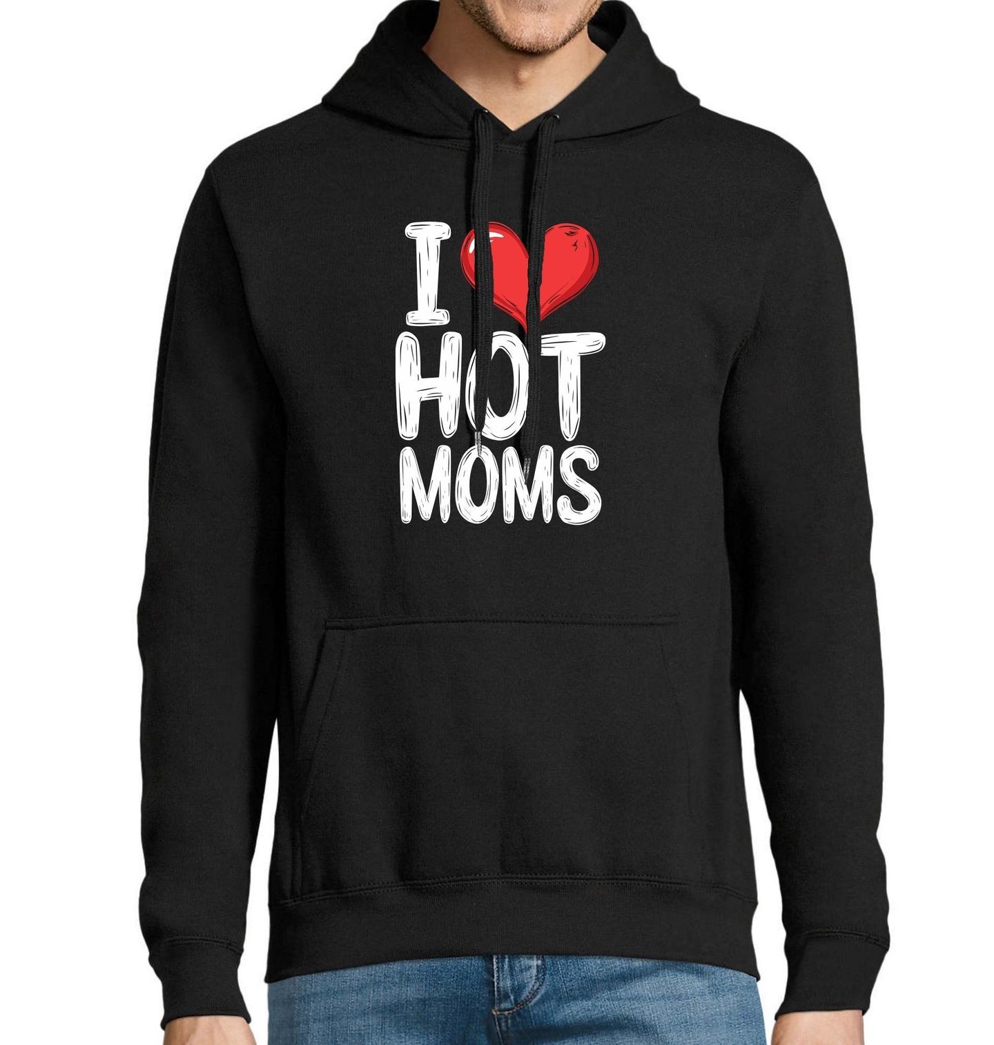 Pánská mikina Miluju žhavé maminy I Love Hot Moms. Pro všechny, kdo se nebojí přiznat, že mají slabost pro krásné mámy. Stylová a lehce provokativní hláška, která zaručeně pobaví na každé párty nebo rozlučce. Skvělý dárek pro kamaráda se smyslem pro humor nebo jako originální tričko na volný čas. Protože láska k mámám má mnoho podob!
