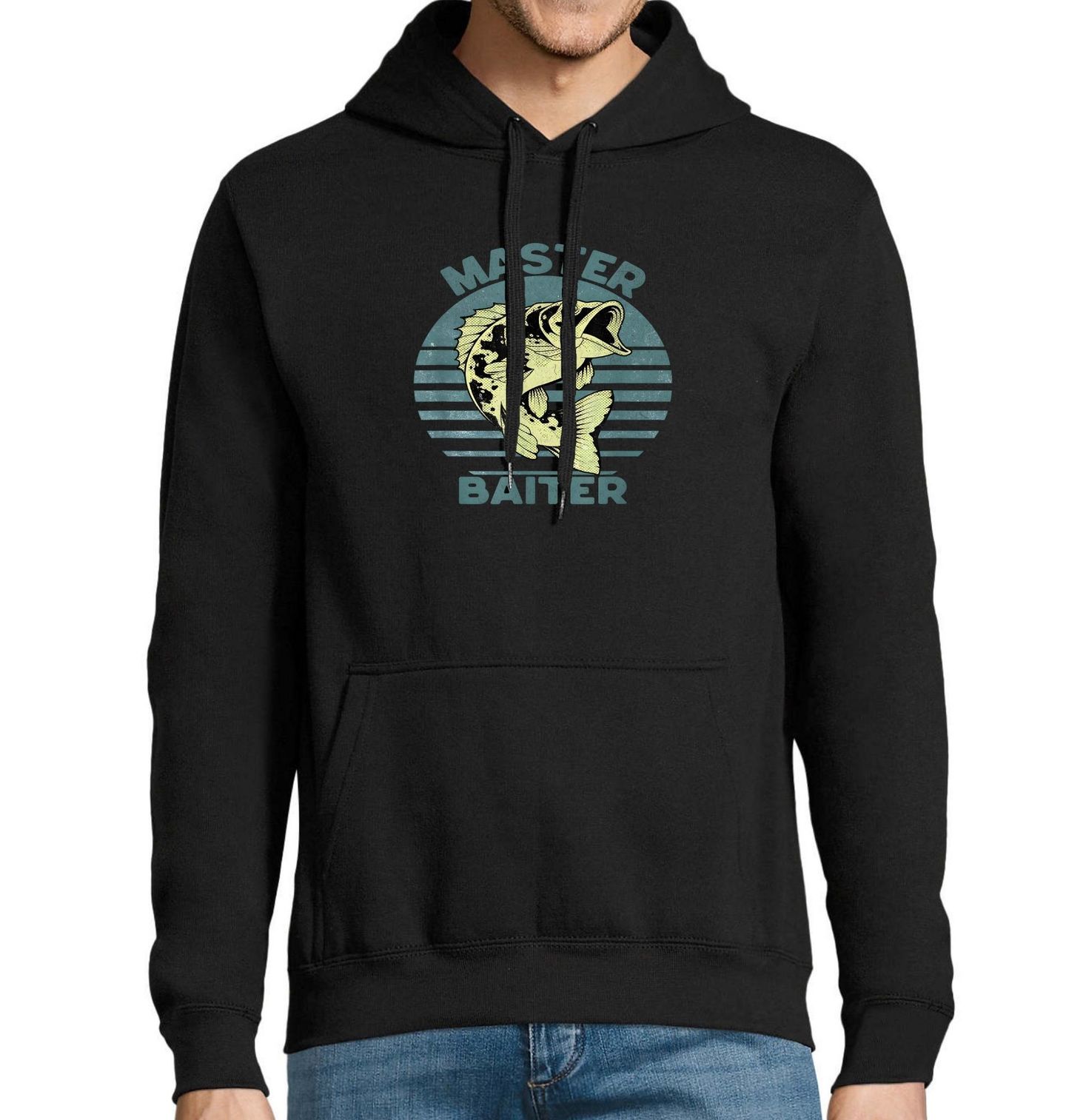Pánská mikina Mistr návnady Master Baiter. Ideální motiv pro každého rybáře, který miluje rybaření a humor. „Master Baiter“ s detailní ilustrací dravé ryby (pravděpodobně okouna, známého jako black bass) je trefa do černého. Ideální dárek pro každého, kdo má rád háčky, návnady a vtípky.
