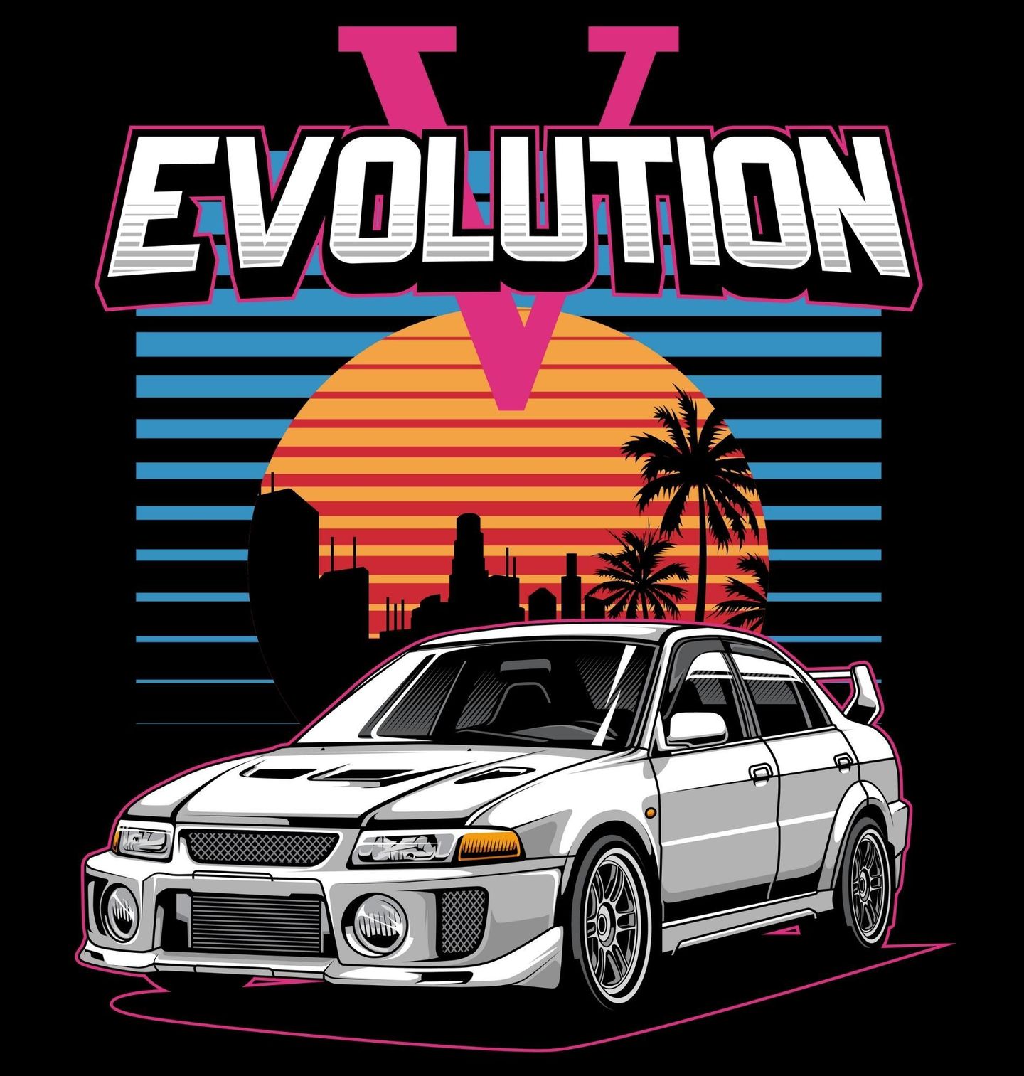 Pánské tričko Mitsubishi Lancer Evolution V. Sportovní japonské auto z konce 90. let, které vzniklo hlavně pro rallye homologaci. Patří mezi legendy JDM scény a je známé pohonem AWD, turbomotorem 4G63 a agresivním vzhledem. Dynamický design inspirovaný stylem JDM spojuje sportovní linie, agresivní vzhled a atmosféru, kterou dokáže nabídnout jen pravé Japonsko.