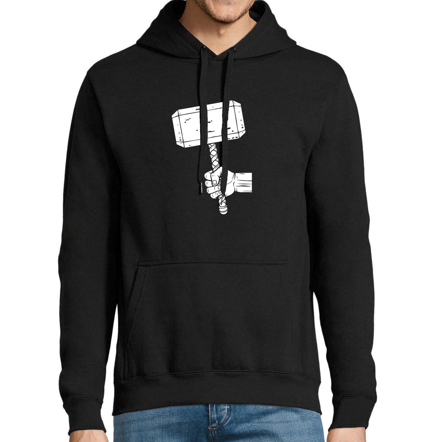 Pánská mikina Mjöllnir Thorova zbraň. Tento výrazný motiv zachycuje mocnou ruku vikingského bojovníka, která pevně svírá legendární Thorovo kladivo Mjölnir – symbol odvahy, hromu a nezkrotné síly. Ideální pro milovníky severské mytologie, fantasy, a všechny, kteří nosí sílu nejen v srdci, ale i na hrudi.
