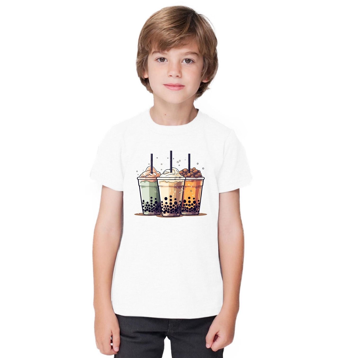 Dětské tričko Mléčné Bubble Tea s Tapioka Kuličkami. Různé barvy, šlehačka a tapiokové perly vyjadřují rozmanitost chutí a vizuální radost, kterou bubble tea přináší. Skvělý design pro milovníky sladkého osvěžení, asijské kultury a trendy lifestyle. Ať už je to matcha, vanilka nebo karamel – bubble tea tu má své místo!