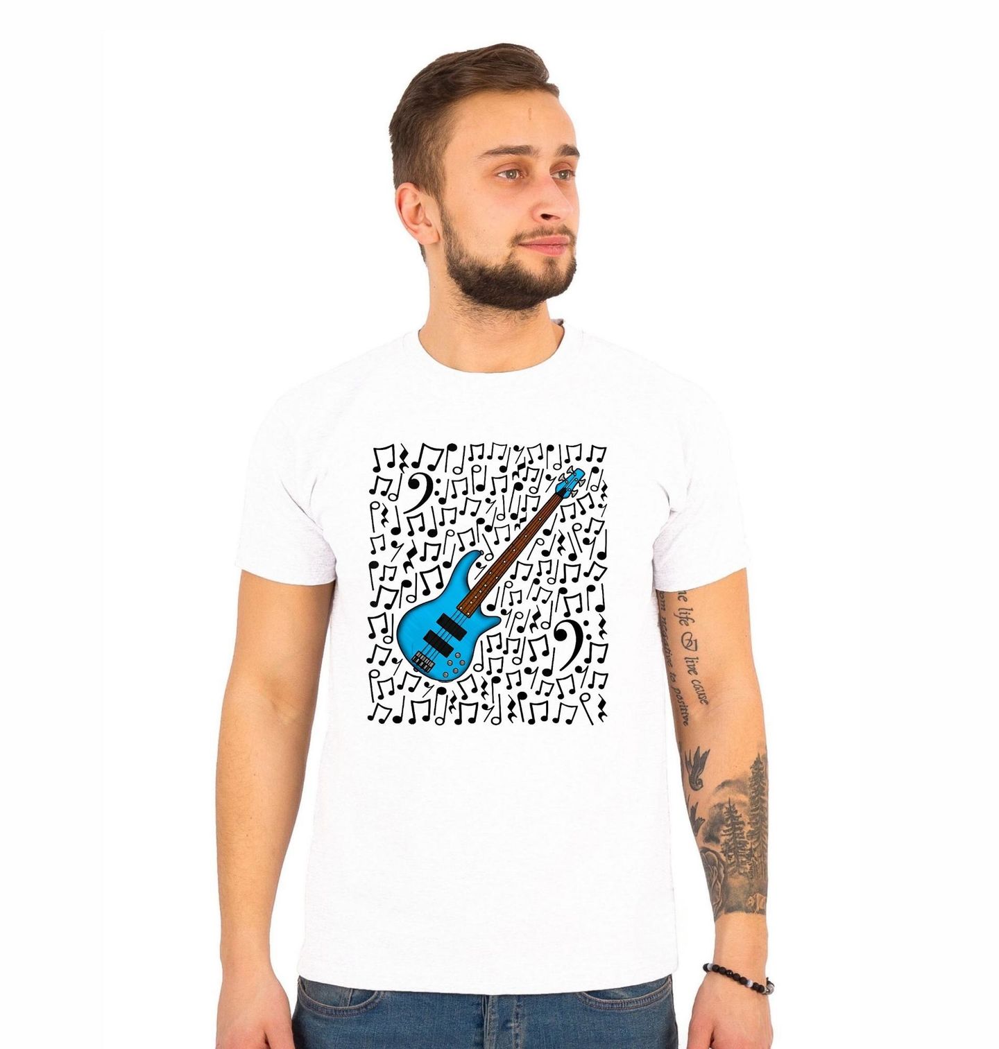 Pánské tričko Modrá Baskytara v Rytmu Not
