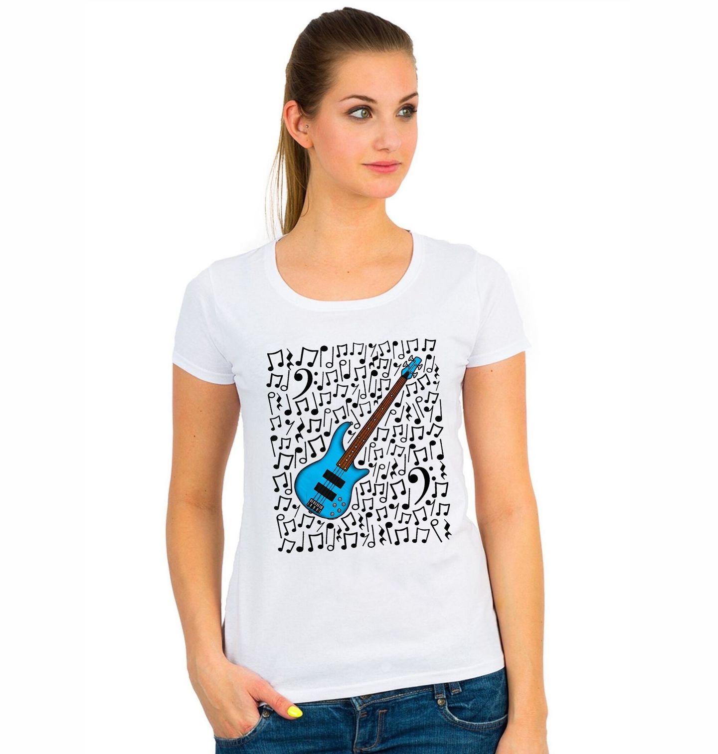 Dámské tričko Modrá Baskytara v Rytmu Not